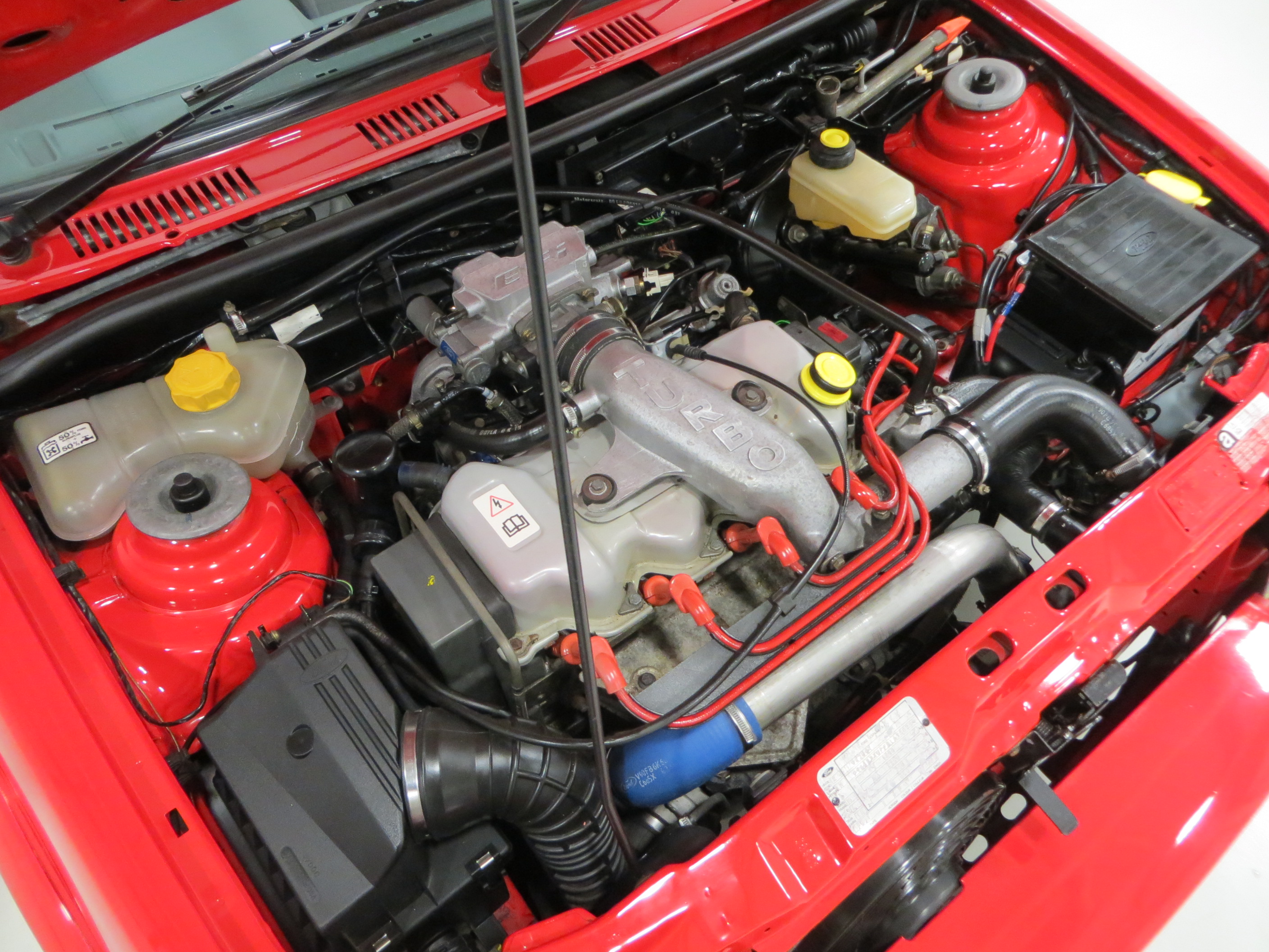 Finished in gleaming Ford Radiant Red, (Code P1), this amazing example still retains its factory paint coat with an amazing deep gloss shine created from years of enthusiast ownership and careful storage. All the trim, rubbers and glass are as new and reflect the incredible low mileage, virtually impossible to replicate even with replacement. The glass is chassis etched. The factory decals and correct green insert remain in pristine condition and even the supplying Ford Main dealer number plates are included but reproduction ones are currently fitted. The underside is totally original having not been detailed and the factory applied coating is dry. A small section of paint lift around the inner boot lock mechanism is evident and left untreated in order to uphold originality. Suitable for the most discerning and fastidious collector or blue oval fan seeking a totally unmolested and very rare Fiesta RS Turbo.