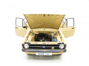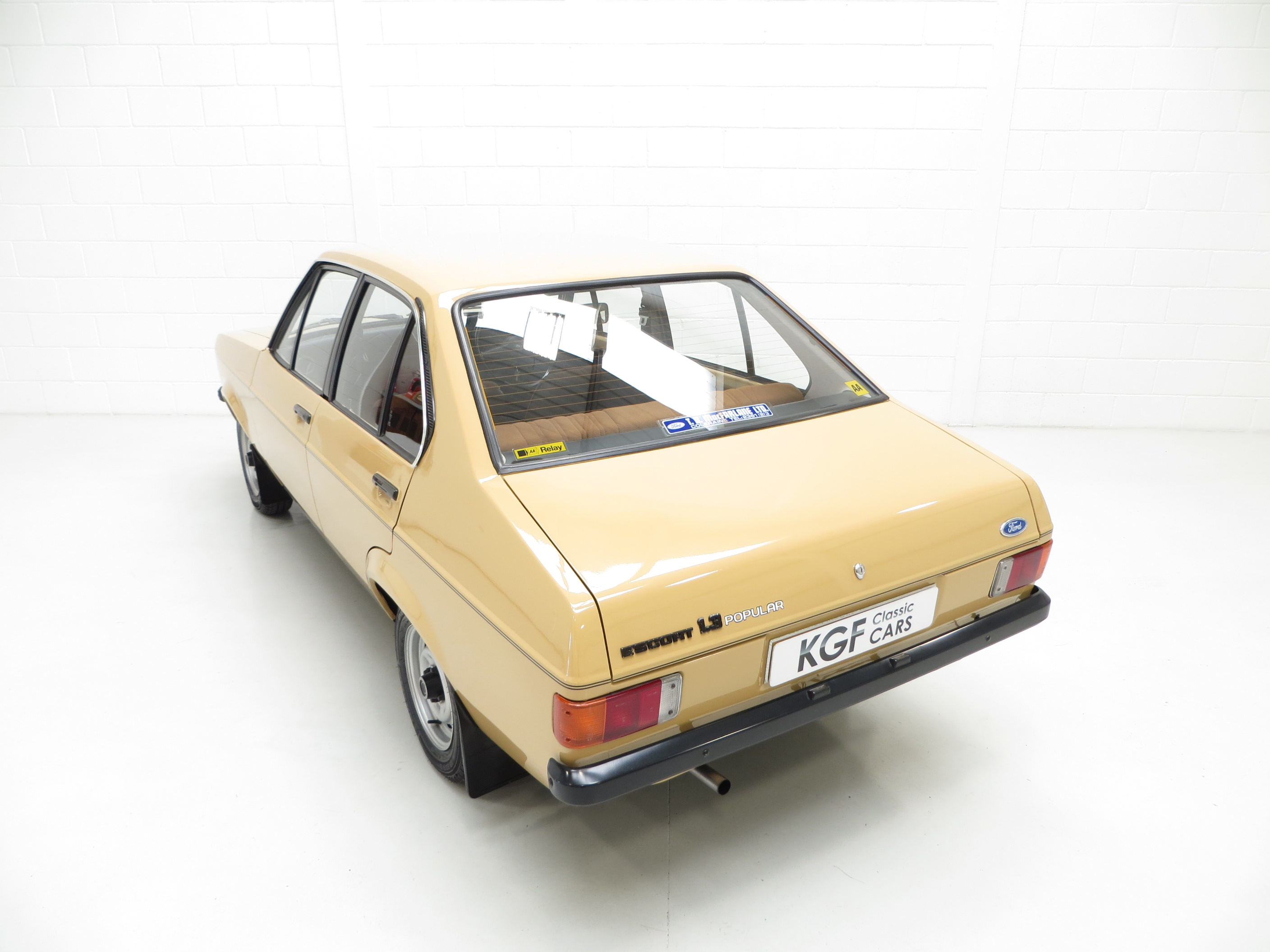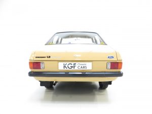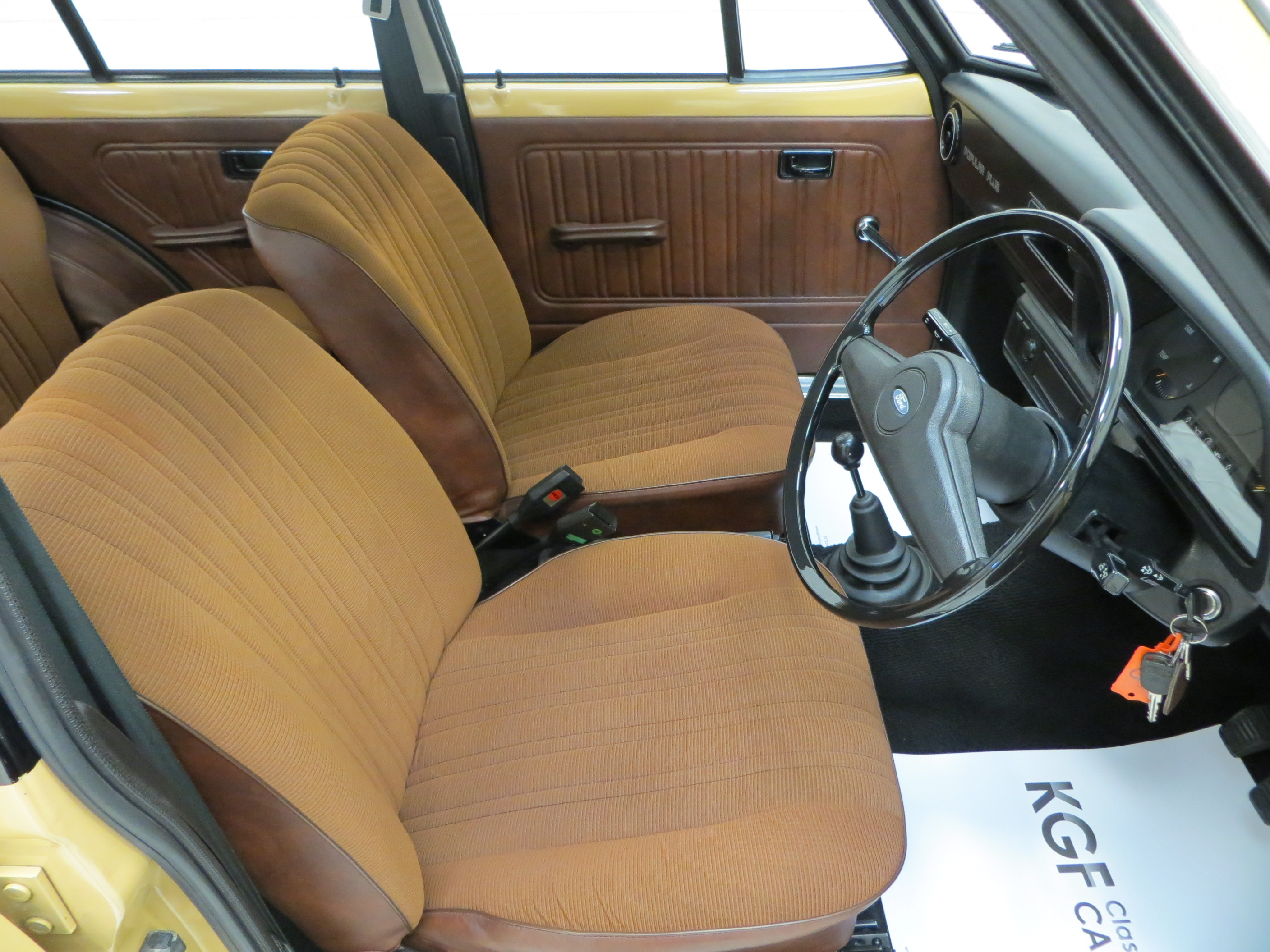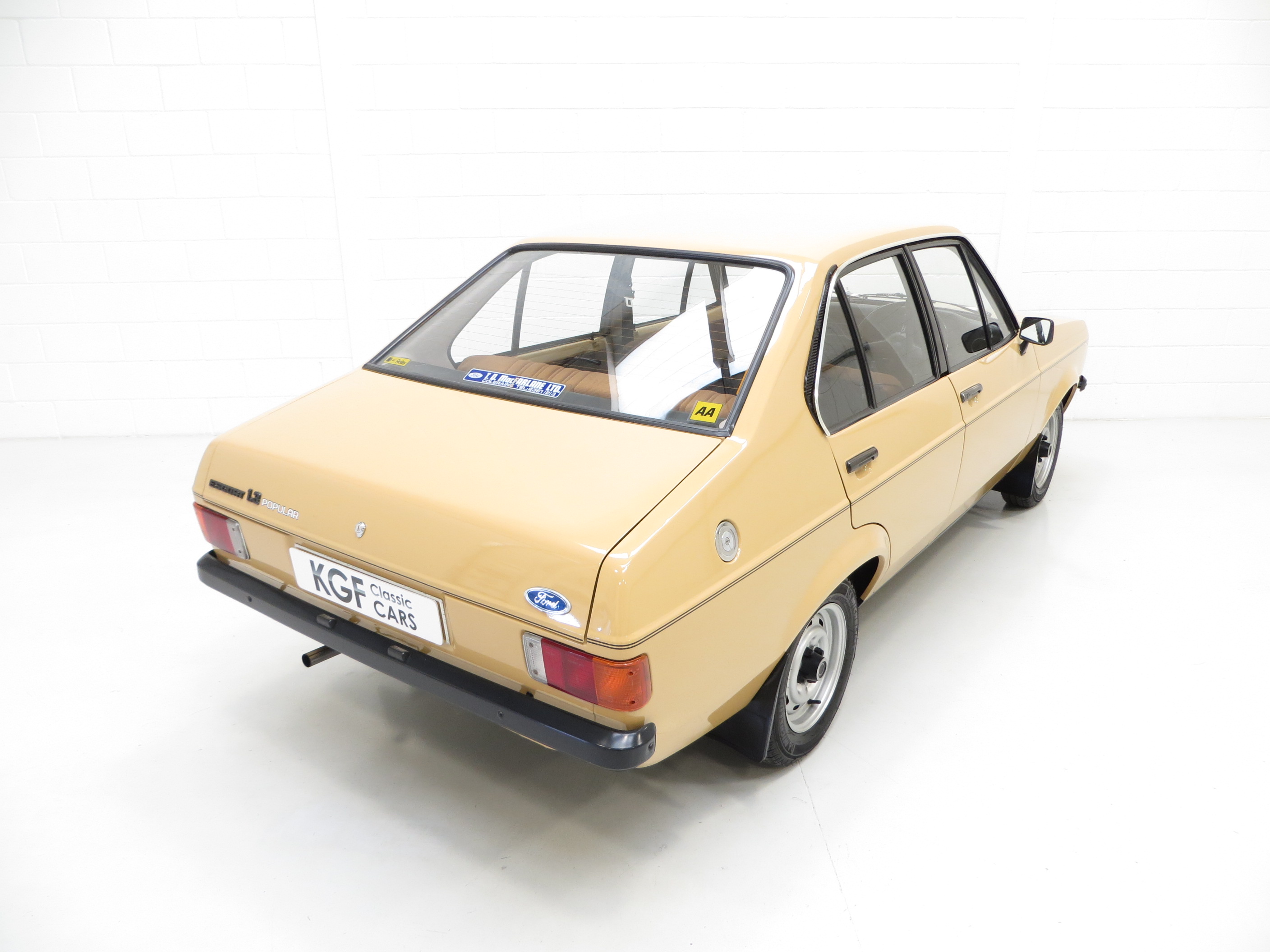 This fabulously nostalgic 1300 Popular Plus is simply divine finished in unassuming and incredibly rare Sahara Beige, (Code 88). Having enjoyed a cosseted life including a recent spell in a Ford Main Dealer showroom the car displays a uniform, highly polished finished worthy of the rosettes included. All panels are straight and display uniform gaps and the plastic chrome window surrounds show slight whiting to the tips. The correct circular Lucus headlamps remain fitted along with the lesser models undamaged black bumpers, door handles and drivers mirror. Upon close scrutiny two minor touched in stone chips can be seen on the bonnet and one to the rear wing. Dealer fitted number plates, mud flaps and rear window sticker are all still present. Perfect for the show season.