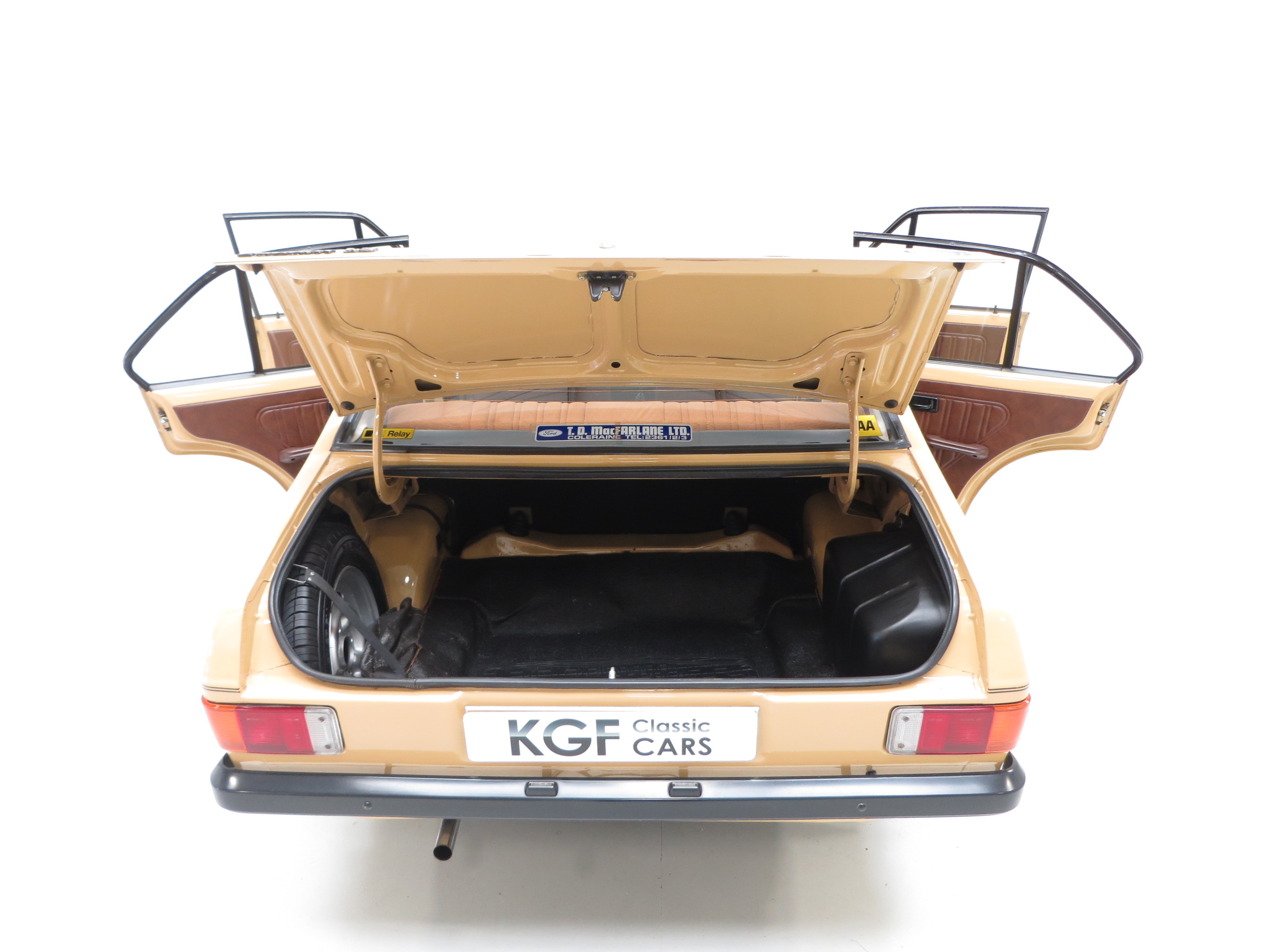 Registered new on the 29th October 1978 by Ford Main Dealer, TD MacFarlane in Coleraine, Northern Ireland to a Mrs E.Good of Ballycastle Road, Coleraine, this stunning Escort has had just two former keepers from new. In her care for 18 years and used sparingly before being sold to a Mr A Louder on her passing in 1996. As a preferred MG collector the Escort travelled a mere 1,000 miles in his 16 years as the careful custodian. Finally owned by a Mr Cheape and housed in a Ford Main Dealer showroom where it has been on proud display since 2012. A substantial collection of old MOT certificates help trace the incredible low 20,635 miles from new and handbooks are present. The supplying dealer leather key fob is present and ready to be passed to the lucky and discerning new keeper!