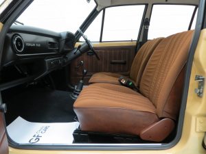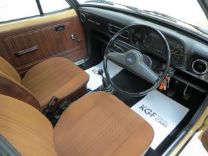 Charming and utterly exceptional finished in unmarked Chocolate fabric with matching brown vinyl door cards and spotless black loop pile carpeting. The headlining is tight with no fade and even the rear parcel shelf has a deep black finish thanks to indoor storage and avoidance of sunlight. The fully intact dashboard displays no cracks whatsoever and houses fully functional switchgear, controls and gauges. The Popular Plus script on the facia reminds the owner that there is still one lesser model in the range! The boot area is pristine with the metal floor gleaming and factory markings visible. Often used too liberally, the term ‘time warp’ is unquestionably justified and the incredibly low mileage is thoroughly reflective in the interior presentation.