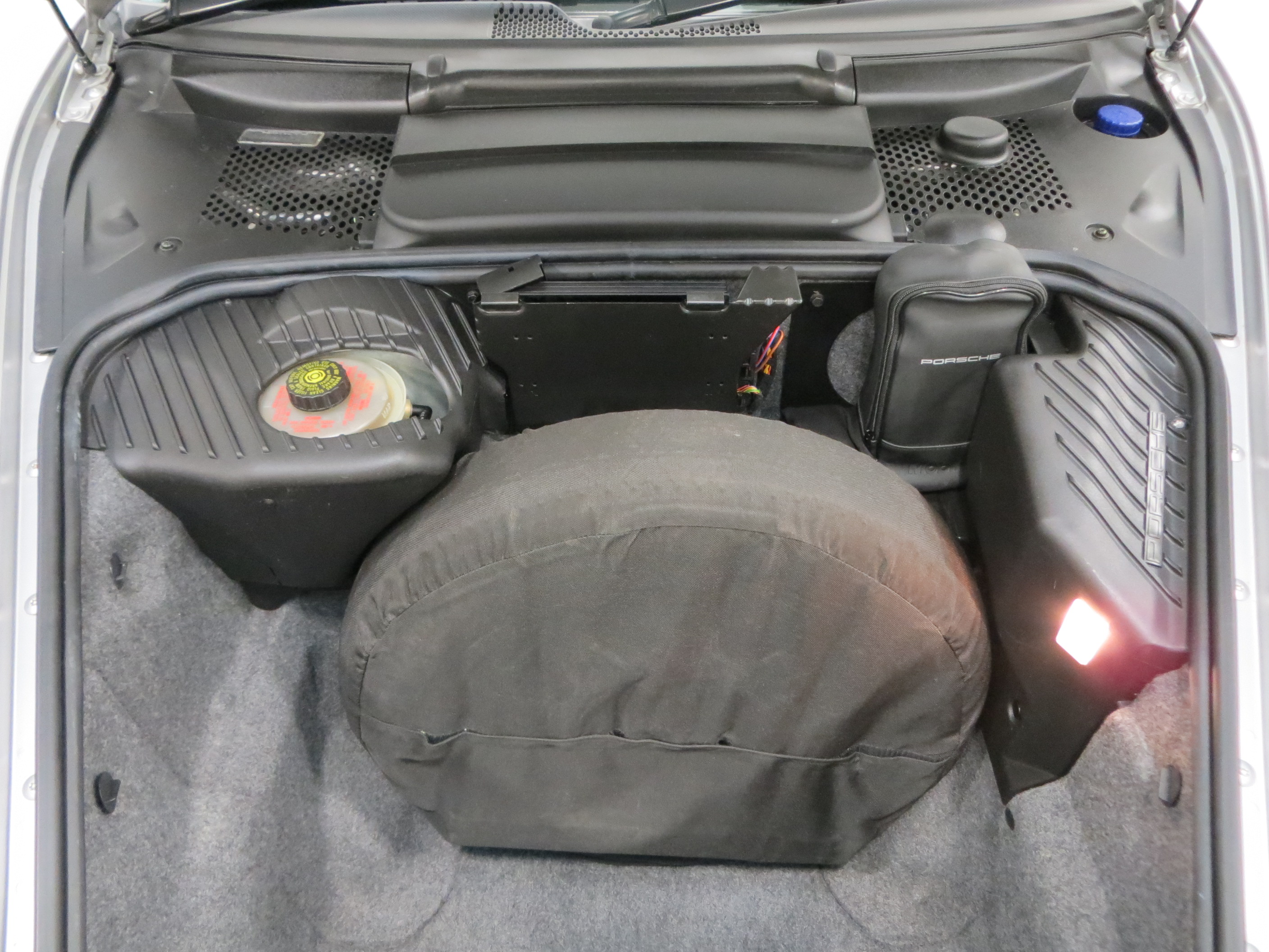 Typical Porsche quality and exemplary craftsmanship to be expected in this well appointed cabin space, with virtually every option ticked at the point of order! The Metropole Blue full leather upholstery (code X1), an expensive option when new has remained in beautifully clean condition with only light crazing to the leather on the driver’s seat outer bolster and natural veins. The carpets are spotless having been protected from new by tailored Porsche over mats, the driver’s side mat showing a small section of wear to prove it’s done its job! The perfect leather topped dash and aluminium fittings really do lift the interior, and all functions and controls operate perfectly. Beautifully clean dual cargo areas reflect the minimal use and extended care this car has enjoyed. Effortless folding of the electric hood transforms this every day roadster into something truly special, with endless scope for open top enjoyment and exhilaration.