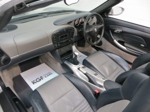 Finished in factory optional Arctic Silver Metallic (code L92U), the original paintwork is simply incredible having been protected from new by the Armourfend paint protection film and subject to regular professional valeting at the request of the one fastidious owner. The uniform finish and undamaged bodywork is commensurate with such a low mileage well cared for example, and only very close scrutiny will reveal minor stone chips and faint markings, utterly insignificant. The UV-resistant hood in optional Metropole Blue is perfect in operation and fully intact with no damage and a clear rear screen. Mild delamination around the front windscreen to one lower corner is visible. An exceptional car in a condition far superior to the usual offerings, one of the best without question.
