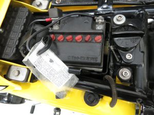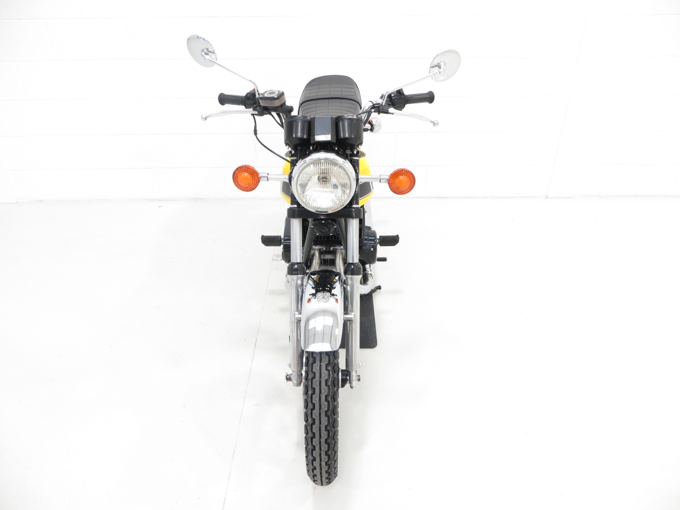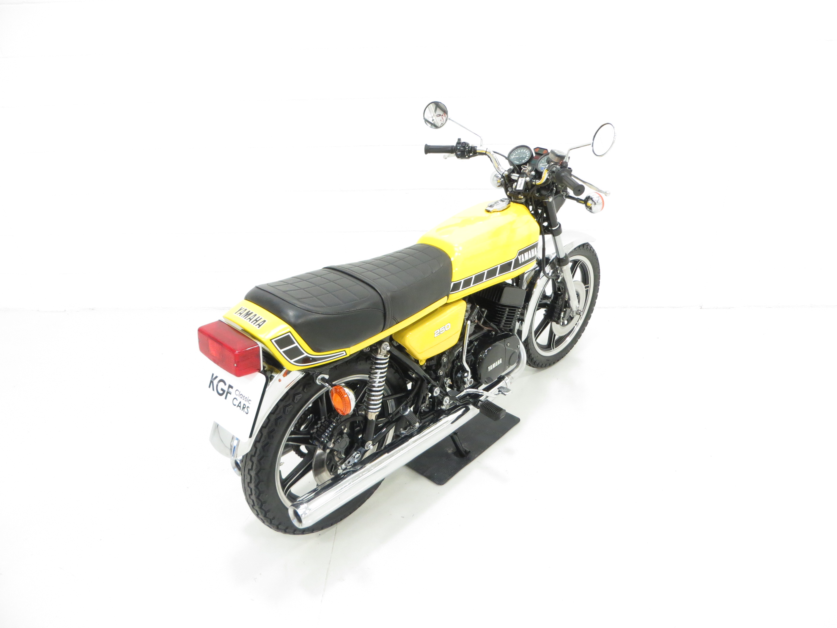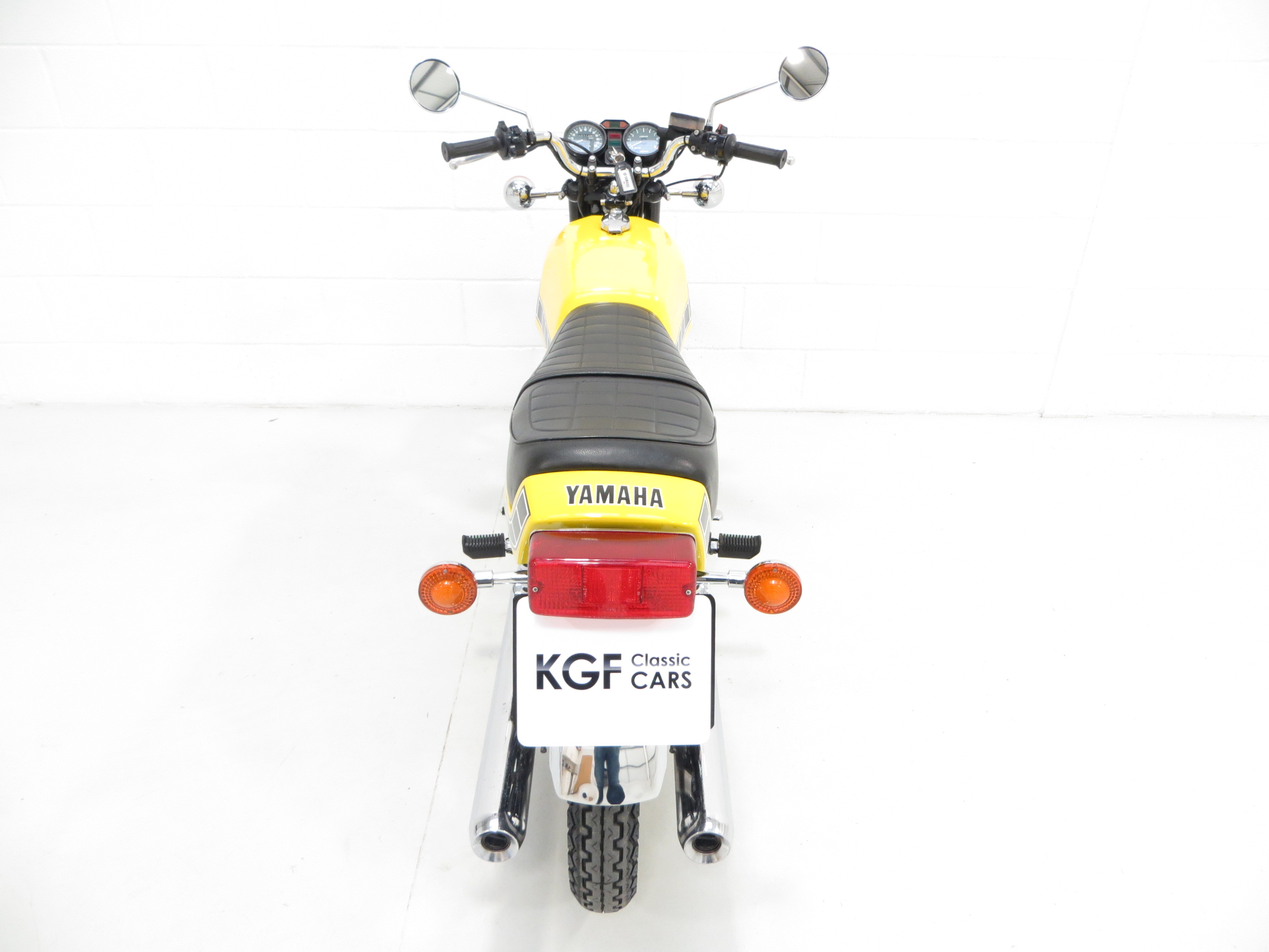 Finished in the highly desirable Kenny Roberts Racing Yellow, a colour attributed to the legendary racing champion who dominated the world of professional motorcycle racing in the 1970’s and 80’s. The original paintwork with matching side faring is in superb order with the black Yamaha decals unspoilt and fully intact. The detail to this bike is simply superb and just as the maker intended with beautifully polished and preserved components worthy of the show scene. The chromework is generally excellent with only two shallow dings to the front mudguard and slight pitting to the exhaust pipes worthy of mention. The high-tensile steel tubular double-cradle frame is in a superb state with the matching chassis and engine numbers clearly visible for inspection. The large seat lifts to reveal lockable storage with factory stickers and remains in excellent order aside from two miniscule nicks to the covering, barely noticeable. All functions, lights and controls operate perfectly owing to the previous owner’s fastidious nature and desire to ride the bike recreationally. A very special example of Yamaha’s iconic RD Series.