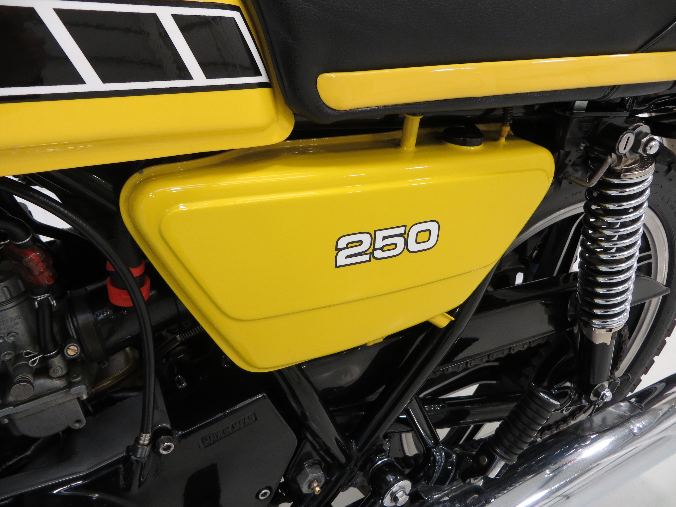 This RD250 remains fitted with the stylish cast-alloy wheels with black detailing. These