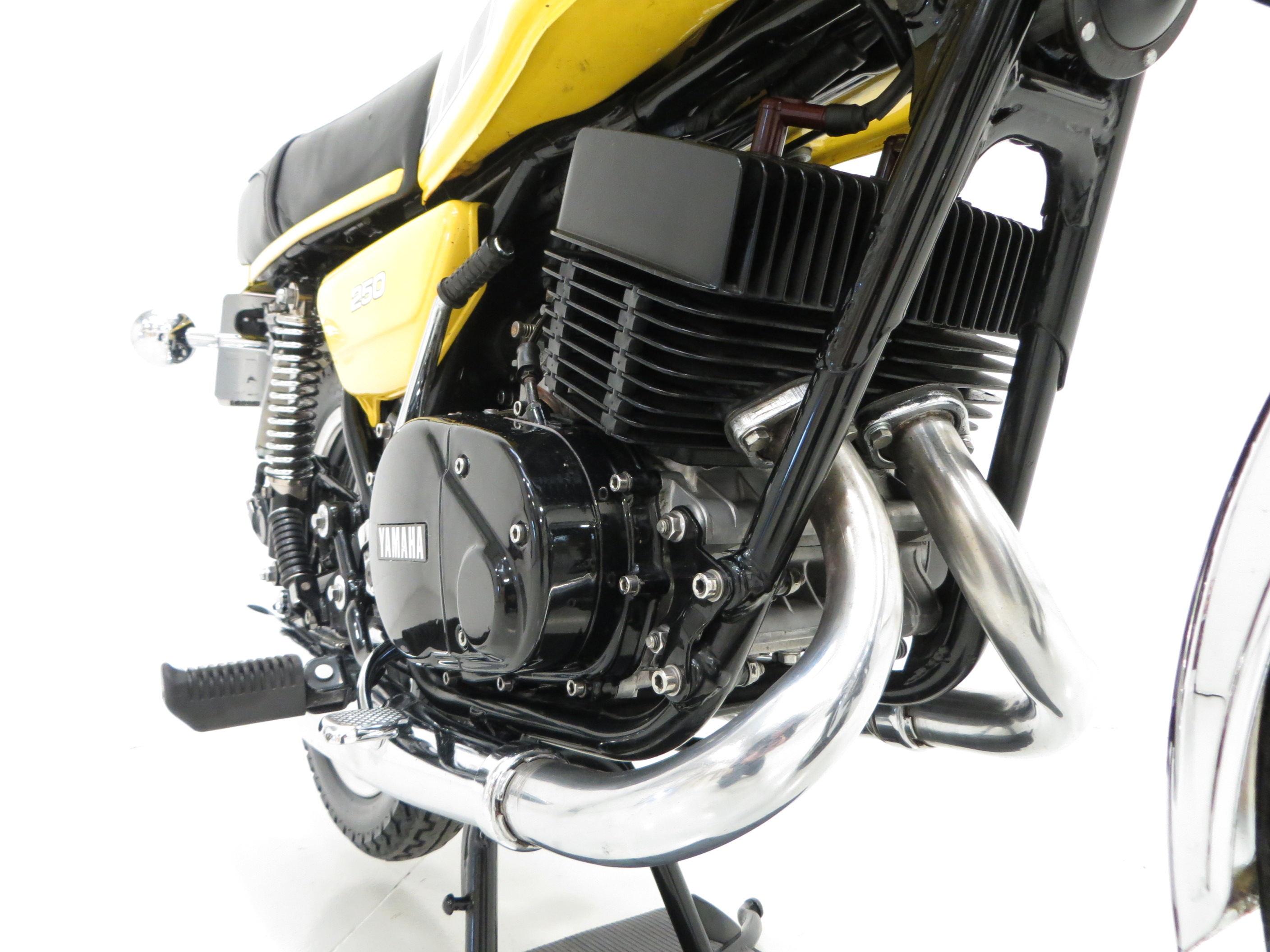 The 2-stroke torque induction engine has a 247cc displacement and produces 32bhp at 8000rpm. Featuring many advanced features at the time such as Yamahas Autolube system varying the delivery of pressurised oil linked to the throttle and precise ignition timing by utilising transistorised capacitor discharge ignition CDI. Owing to regular maintenance and riding enjoyment in dry conditions, this example kicks into life effortlessly and performs wonderfully. The 6-speed transmission has perfectly selected ratios and a multi-plate clutch running in oil for feather light changes.