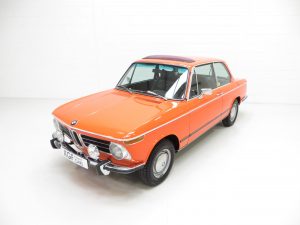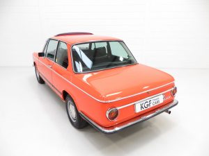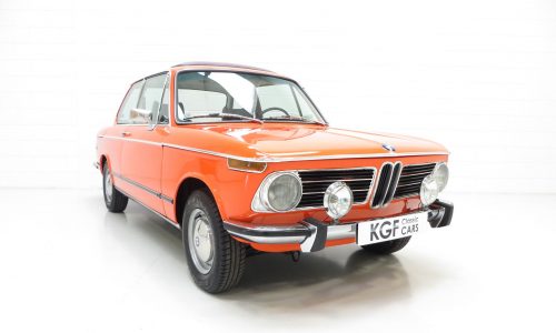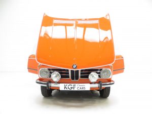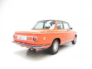 Introduced as a compact, shortened version of BMW’s existing Neue Klasse Sedans, the ’02’ Series was named so in relation to the number of doors the cars had. This stunning 1802 model is the desirable and highly sought after ‘Round Light’ model and features the exceptionally rare electric sunroof fitted as a factory option. Finished in vibrant Inka Orange (code 022), this wonderfully period colour looks absolutely fantastic, helped by the brilliant uniform polished finish to the paintwork. The trim sections, rubbers and chromework are incredible and virtually unmarked with only light hairline scratches to the rear bumper worthy of mention. The underside remains clean but undressed in order to retain the cars true honesty. Original features such as the 1802 rear badges, BMW stamped fuel cap, optional Hella halogen driving lamps and even the ultra-rare stamped ‘02’ Series sunroof deflector will delight the avid BMW aficionado. A superb example of a model deep-seated in classic BMW history.