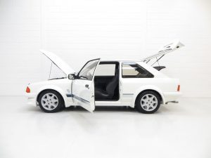 The Series 1 Escort RS Turbo was carefully developed by Ford’s talented Special Vehicle Engineering team whose other resounding successes include the Capri 2.8 Injection and the XR3. The RS Turbo was designed to set new standards in Group N and Group A events, and was quickly dubbed the car to beat. Ford initially planned to build 5,000 RS Turbos, the minimum number required for homologation in Group A, however a total of 8,604 were built due to increased demand. The car was greeted with huge enthusiasm and was only sold through official Rallye Sport dealers. A following that today has amassed into obsession for many a diehard Ford enthusiast.