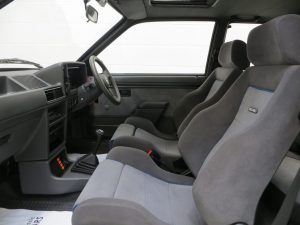 The original 15 X 6 inch RS seven spoke alloy wheels are spotless and the correct factory stampings on the three spokes of each rim are clearly prominent. The original Michelin MXV 195/50 VR15 tyres whilst unworn and in visibly good order, due to age it would be prudent to replace and retain if the car is to be put into regular use. The original spare wheel also shod in the Michelin MXV rubber, is housed in the boot floor which has the manufacturer stickers and blue scribe markings still present. Diagonally split hydraulic circuit brakes with 240mm ventilated discs up front and 203.2mm rear drums bring the car to an assuring halt.