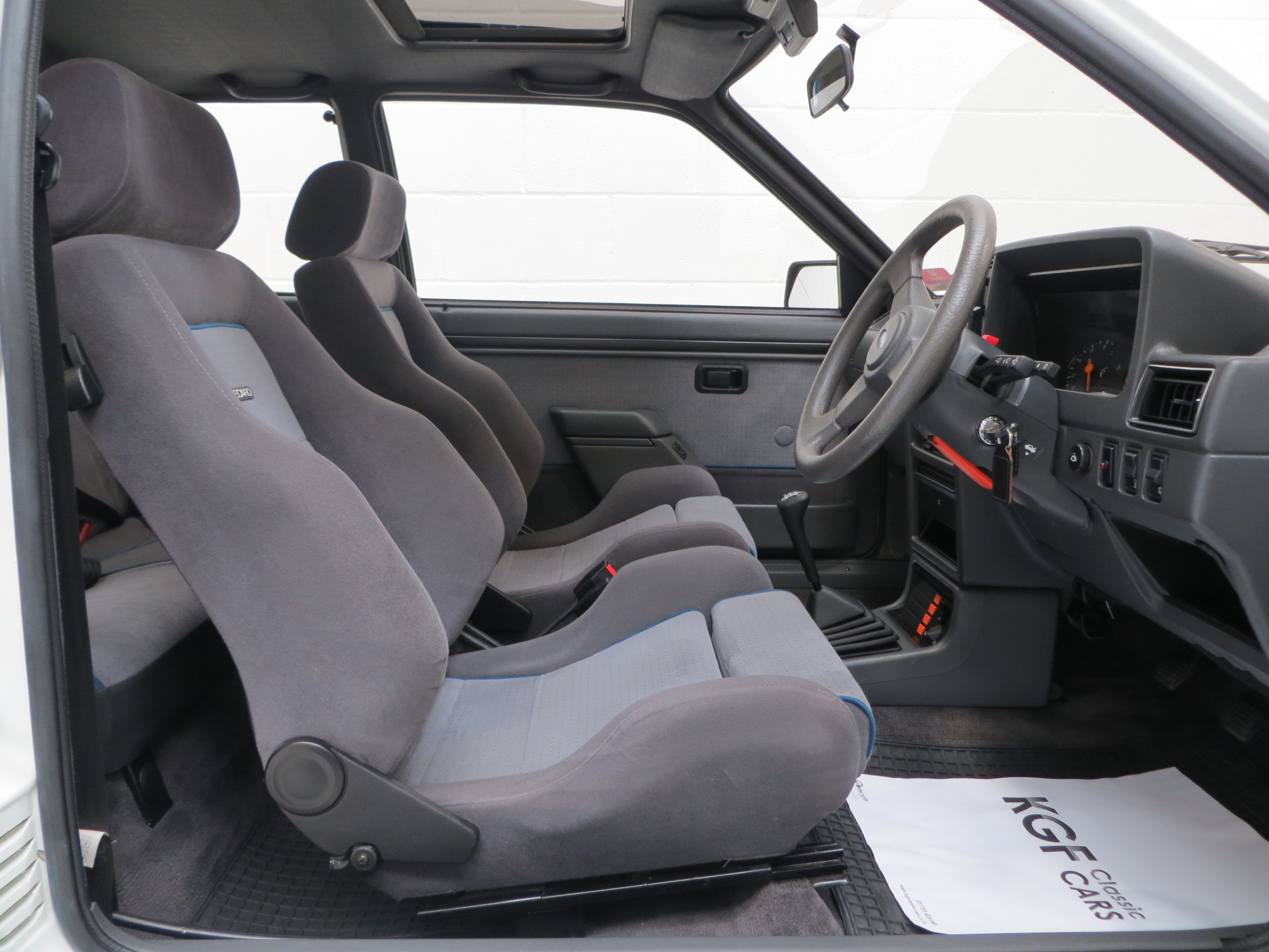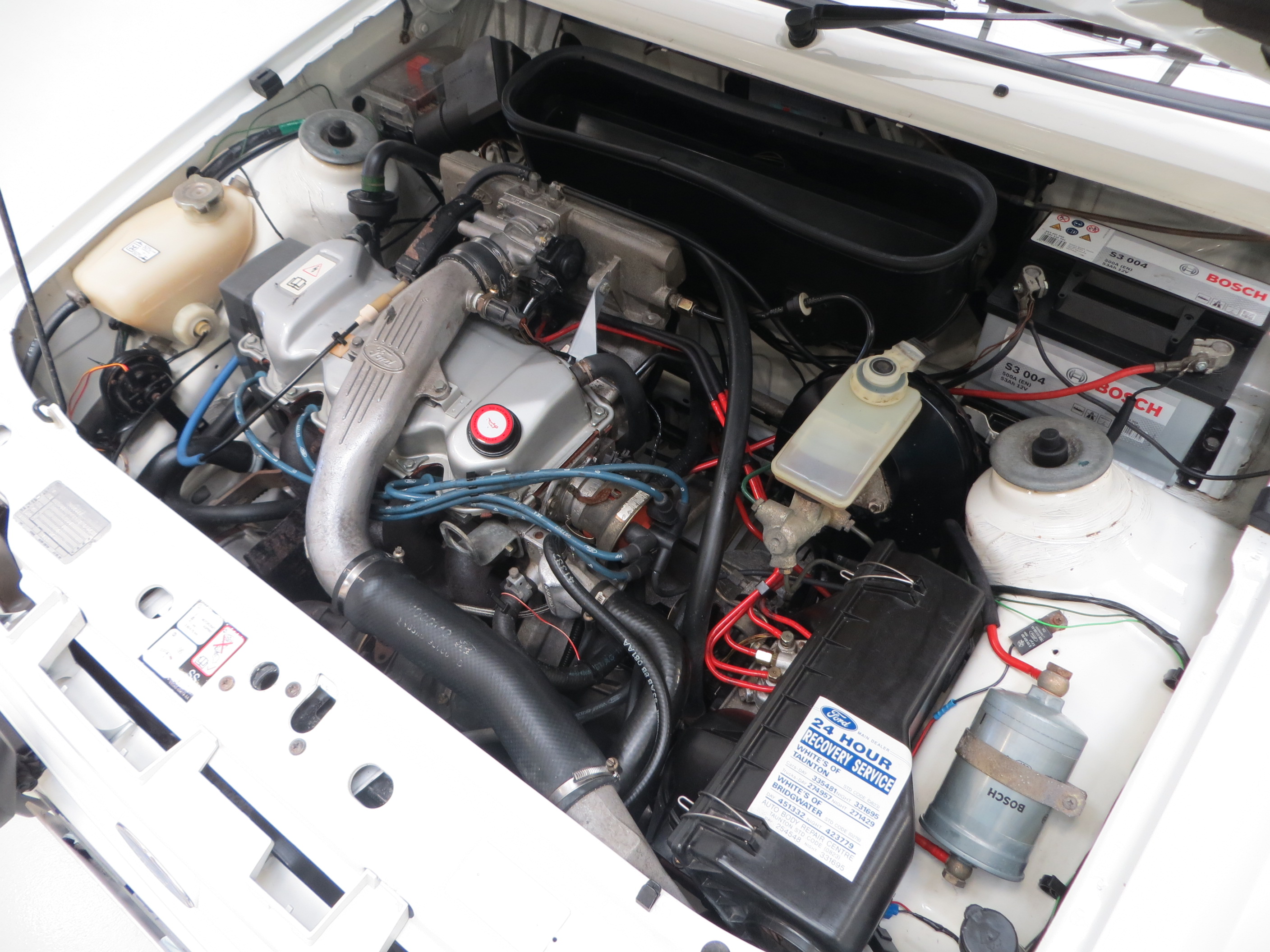 Fitted with Fords 1596cc turbocharged Compound Valve Hemispherical chamber (CVH) unit, producing 132BHP at 6000rpm, mated to the Bosch KE Jetronic Fuel Injection System. Turbocharged power delivery courtesy of a Garrett T03 turbo, the car accelerates smoothly to a maximum speed of 125mph and achieves 0-60 in 8.2 seconds. The engine produces a delightful note through the standard and original exhaust system. The gear changes are light and absolutely precise allowing both subtle and enthusiastic driving. A truly exhilarating driving experience and exactly in accordance with the low miles covered.