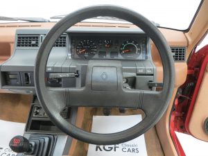 The interior of this well specified GTL model is in time warp condition, a term often misused but truly justified in this instance. The upholstery consisting of Montrace ‘Petale’ shaped front seats with tweed cloth seat facings are spotlessly clean and have suffered virtually no wear, as has the full carpeting, door cards and headlining. The dashboard and switchgear are perfect and all functions and controls operate faultlessly including the Philips 764 radio cassette. The texture to the steering wheel usually worn smooth is as new. Features such as Renault rear screen stickers and the straight and uncut parcel shelf will please originality seekers, although the shelf has slightly faded in the sunlight. A well designed cabin with large glass areas to offer a true sense of spaciousness, it was clear to see Renault’s expertise in this class even in the 1980’s. A truly exceptional interior with Gallic quirkiness that will not disappoint.