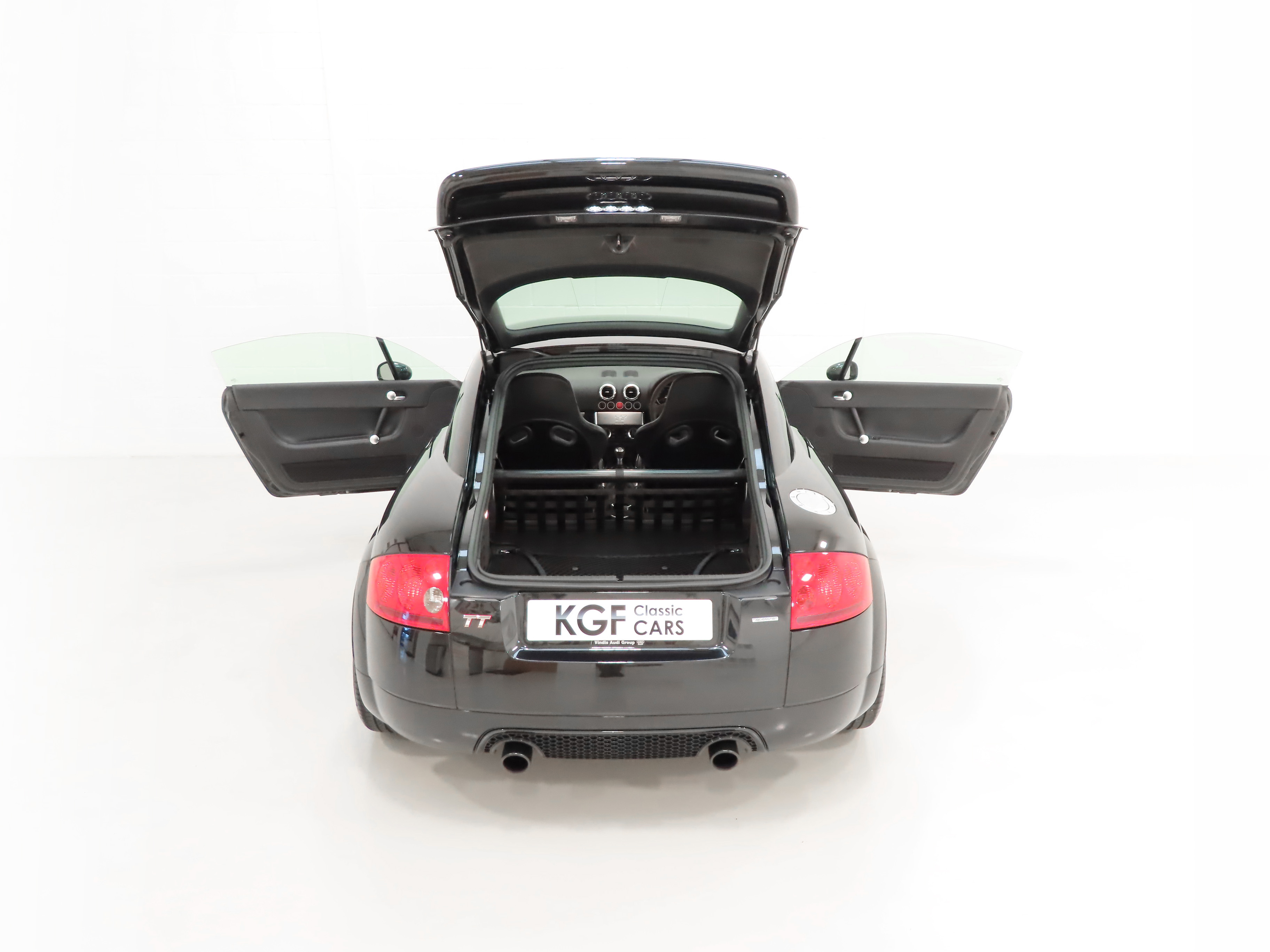 The only Audi TT model built by Audi AG high-performance specialist subsidiary Quattro GmbH in Germany, the Quattro TT Sport or TT Club Sport as it was known in Europe was built in very limited numbers. Just 800 UK cars were produced, less than the 1000 cars originally intended, and this example is finished in Audi Phantom Black Pearl effect, (Code LZ9Y). The paintwork looks stunning and this unspoilt and pampered example will please even the most ardent scrutineers. Correct black exhaust tips and wider arch spats are unique for the TT Sport and all other trim sections are intact with Audi main dealer number plates fitted. The original front screen has some minor marks. All badges are in as new condition to proudly shout about how special this model is. An outstanding example of this much revered and coveted TT Coupe.