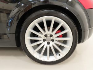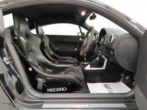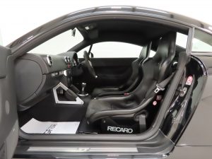 The interior of this Audi TT remains in superb condition. The original Recaro Bucket seats with Phantom Black seat backs intended for the TT Sport remain fitted and are alternative to the less desirable comfort sport seats that were available as a no cost option chosen by some buyers. The black Alcantara/leather seats coverings (code TW) are in fantastic order with no bobbling to the Alcantara on the seats nor the steering wheel, gear knob and handbrake. All controls function and the red LCD display is perfect. Obvious weight saving measures to contribute towards to overall weight loss of 75kg is achieved by a stability bar and luggage net in place of the rear seat, and removal of the spare wheel. Inspection of the luggage area reveals an immaculate air compressor, toolkit, genuine Audi battery and wheel changing apparatus as well as the all-important factory options label. The discreet and unique Quattro Sport badge above the glove box acts as a subtle hint towards this very special TT’s capabilities.
