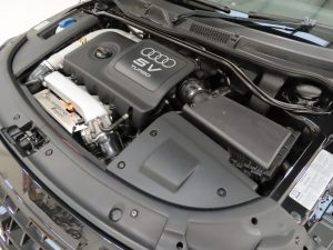 The increased power from the 1.8 turbocharged engine rising to 240bhp is the result of a different mapping profile and offers an explosive 0-60mph time of 5.7 seconds and limited top speed of 155mph. Further weight saving and weight distribution measures were achieved by the removal of the rear counterweight and relocation of the battery to the rear of the vehicle. The engine compartment is very clean and has all stickers and plates clearly visible as well as the under-bonnet label. A numbered plaque has been fitted. The Quattro permanent four-wheel drive system mated to a precise 6-speed gearbox offers phenomenal stability and driver enjoyment.