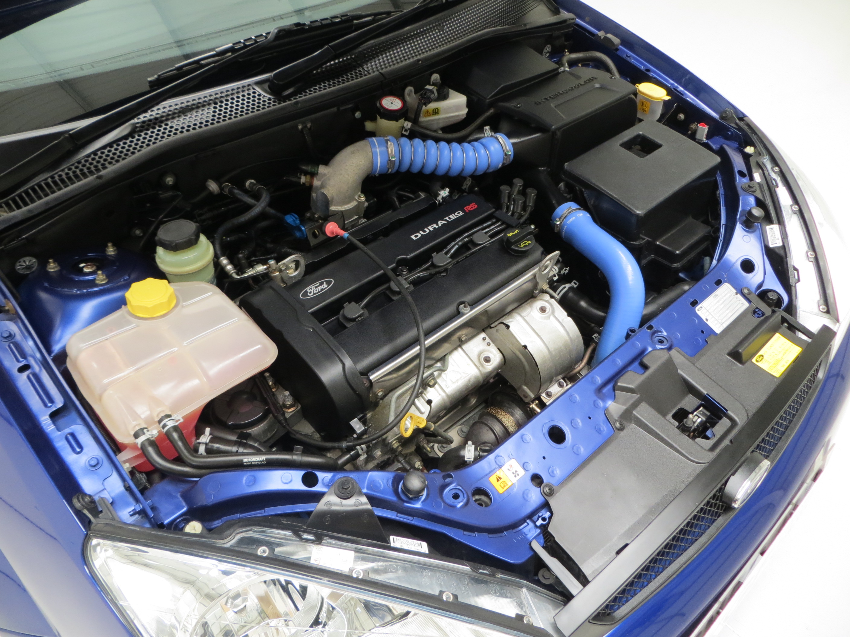 Inside this white hot Ford are a pair of body-hugging Sparco road-race seats swathed in luxurious Racing Black and Blue Leather and Black Alcantara (code AR). The RS and Sparco logos are embossed and stitched into the upholstery, and this coupled with the aluminium fittings, push button start and numbered plaque, leave you with little doubt this is no ordinary Focus! As you would expect from a car having covered just 12,592 miles, the interior condition is virtually flawless and undeniably showroom fresh. The seats have been covered by Ford seat covers. The vital RS carpet mats are supplemented by a set of genuine rubber floor mats for added protection. A period Nokia Bluetooth kit has been dealer fitted. Ford built this car to truly delight its motorsport loving RS devoted fan base, and they hit it just right!