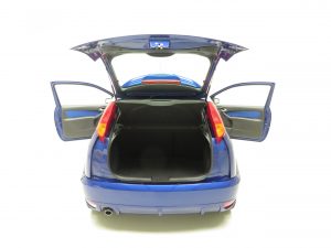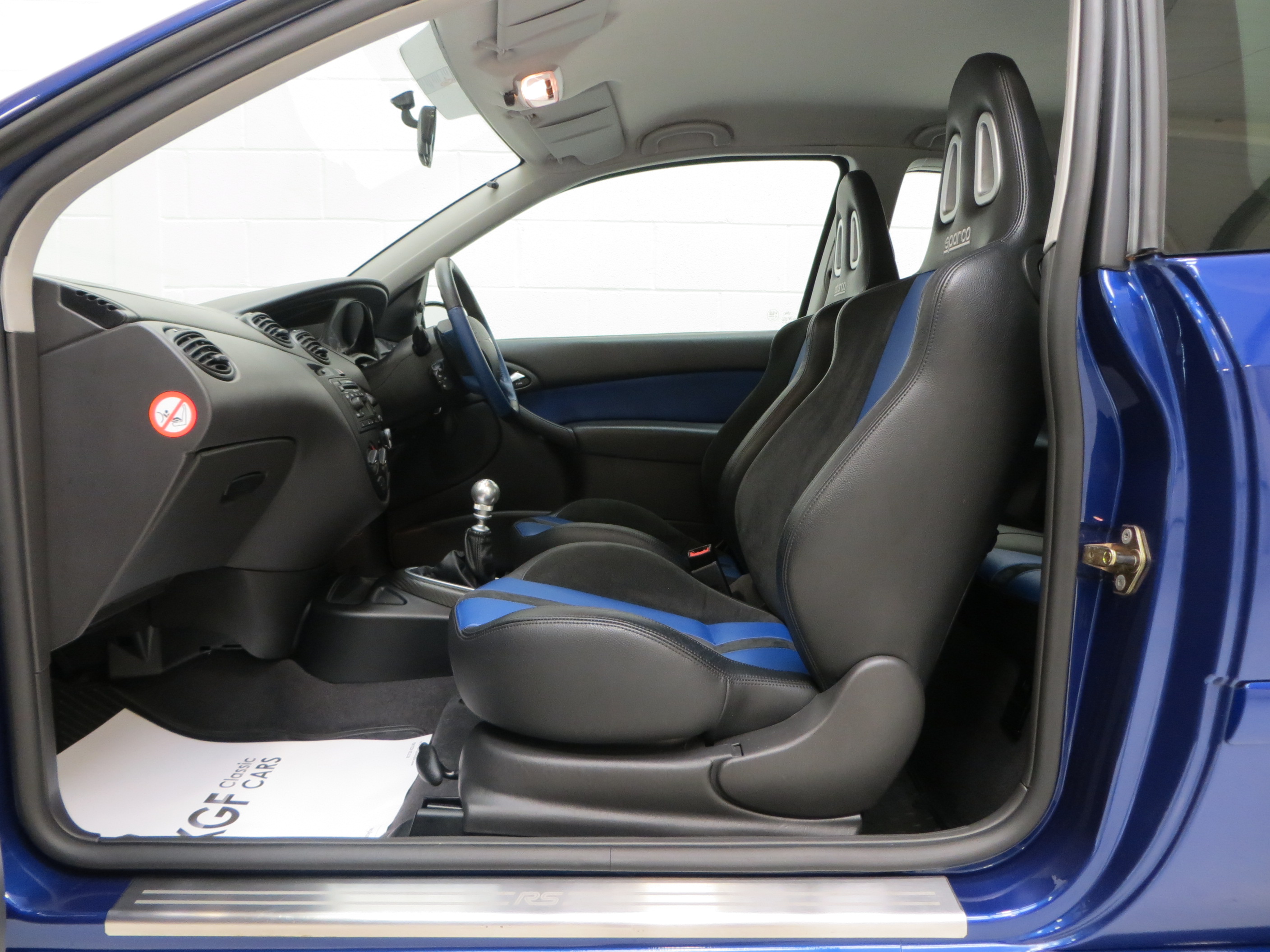 Computer optimised unitary welded steel body, rigid occupant safety cell, energy absorbing crumple zones, wider front and rear pressed steel wings, auxiliary air intakes, aerodynamic splitter and rear wing, mounted side sills, modified lower rear apron, driver and front passenger airbags, air conditioning, leather sports steering wheel with blue inserts, carbon fibre centre console with start button, limited edition number plaque, Sparco aluminium handbrake, gear knob and pedals, boost gauge and ‘change up light’, bright metal tread plates with RS script, stereo radio/6CD model 6006E, Thatcham CAT 1 alarm. Dealer options; Front mud flaps, rubber floor mats, Nokia Bluetooth.