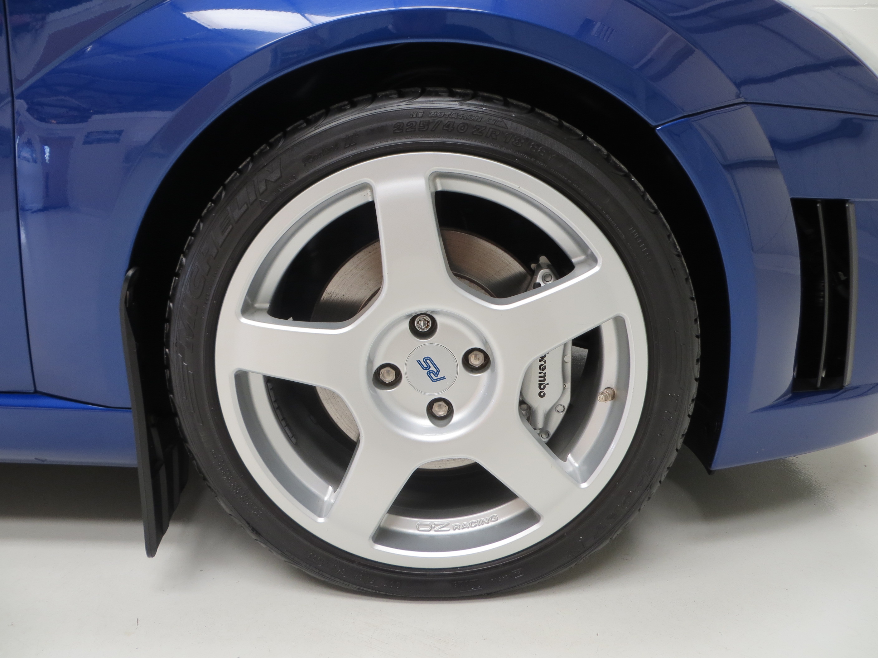 The unique 8 x 18in Oz Racing rims show tiny markings to the face but no curb damage. Incredibly they are shod in the factory supplied and highly sought-after Michelin Pilot Sport 225/40 ZR18 tyres which due to age will need to be changed and stored if the car is to be put into regular use. Peer through the large openings between the spokes and very clean Brembo 4-pot calipers and 324mm ventilated discs will be seen, which of course are capable of providing immense stopping power.