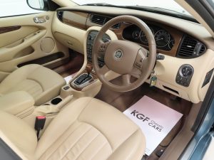 The SE specification full leather interior is trimmed in Champagne colour scheme, (Code SEL) with contrasting Bronze Stained Sapele fascia and door trim. Immensely comfortable and sumptuous, the beautiful upholstery is commensurate with the very low mileage with no visible wear or markings worthy of mention other than some very light hairline creases to the hide on the driver’s seat. The matching carpets are pristine having been protected since showroom handover by Jaguar tailored over mats and both the door cards and headlining are as superb. The highest levels of luxury continue with leather trimmed touch points including the immaculate tan steering wheel and handbrake lever gaiter as well as the wooden bronze-stained gear shifter. All controls and functions operate perfectly including the ice-cold climate control and cruise control. A pristine and luxurious interior, you could almost think you have been comfortably transported back to a Jaguar showroom in 2004!