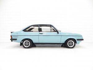 This iconic RS2000 is finished in ultra rare and desirable Nordic Blue which was only produced from August 1979 to production end in July 1980. The vehicle boasts an amazing deep show shine with a polished finish that will really impress onlookers. All trim sections, RS decals and badges remain intact and are in excellent order. Custom Bronze tinted glass is fitted and the rubbers and door seals are soft and black. The polyurethane droop snoot is straight a perfectly colour matched along with all other panels thanks to a photographed and invoiced expensive restoration in 2010. In 1991 damage to the nearside front wing resulted in an insurance total loss payment. One of the genuine Cibie headlights has a small stone chip. The wheel recesses are detailed in body colour and the underside is spotlessly clean and black waxoyled for protection and use.