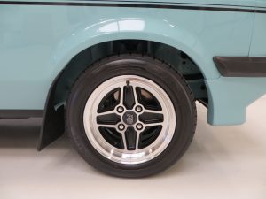 Machined polished RS style four spoke 6J x 13in alloy wheels are in immaculate order with matching Yokohama A539 185/60 R13 tyres including the spare. Vacuum servo assisted front disc brakes with rear drums brakes offer fair braking but fall short of modern standards.