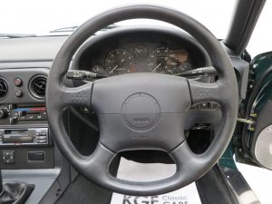 To experience driving a well maintained and cared for Mk 1 MX-5 is a true motoring delight, especially in the most powerful 130bhp version. The lightweight 1.8 litre 16v DOHC engine sits low and behind the front axle to offer a low centre of gravity and centralised weight distribution making handling perfectly balanced and delightfully responsive. A top speed of 123mph and 0-60mph in 8.6 seconds is quoted. The close ratio short throw gearbox provides light and precise gear changes. Brilliant!