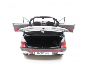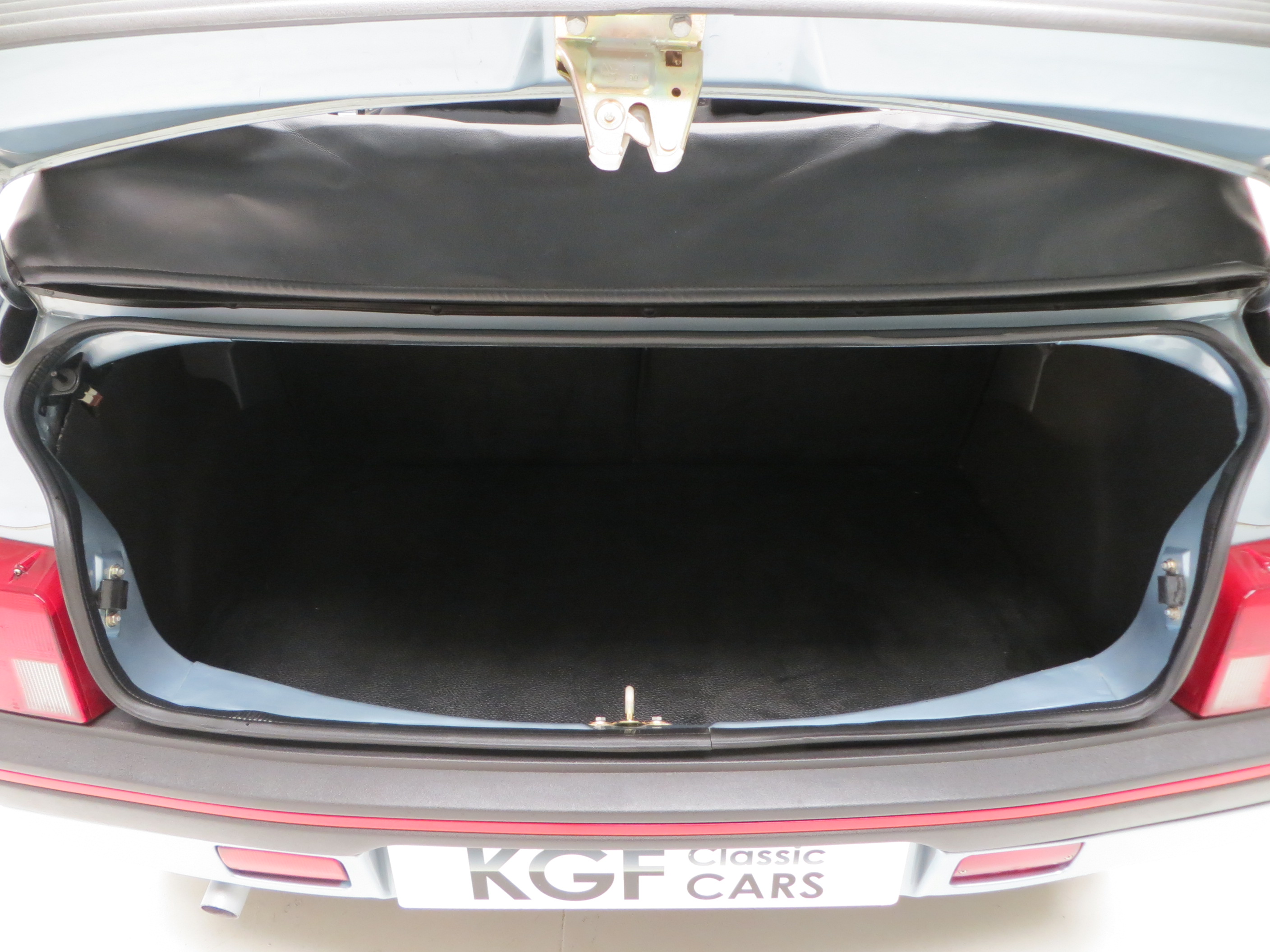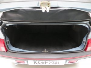 This polished 205 CTI is finished in Azurro Blue Metallic, (Code EMC) and has a beautiful smooth gloss finish. The simplicity and purity of the design is amplified in this chic colour which attracts much attention. The bumpers and bold bodyside mouldings remain in excellent condition other than a tiny scuff to one plastic arch. The factory tinted glass still has security stickers attached and is number plate etched. The original snug fitting black hood is quick and easy to operate and owing to heated garage storage from new remains in excellent undamaged condition with a zipped clear plastic rear screen and tonneau. The two SIEM halogen driving lamps have slight internal discoloration and all lettering, including the side Pininfarina logos, are present and in excellent order. Non-replica supplying dealer number plates are fitted front and rear. An amazing survivor in a usable show condition.