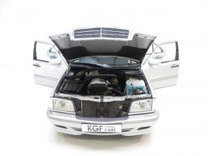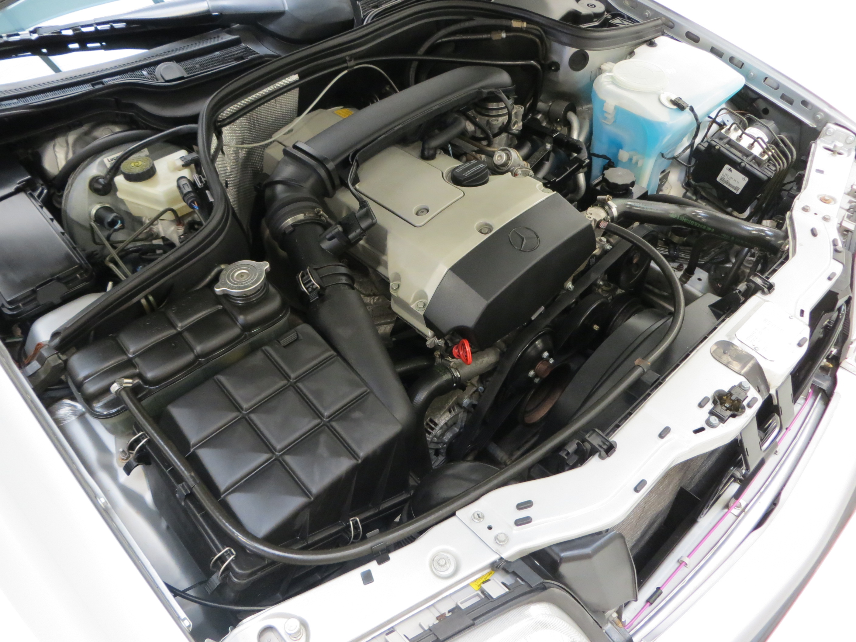 The renowned four cylinder 16v Mercedes-Benz engine is uncompromising in its refinement and durability when maintenance is sustained. Full main dealer and specialist Mercedes servicing has firmly upheld this standard with whisper quiet and smooth performance a delight. Displacing 1998cc, a top speed of 127mph and 0-62.5mph time of 11.1 seconds is achieved. The very clean engine bay remains exactly as intended and displays factory stickers and plates. The optional five speed automatic transmission with Tempomat offers an effortless relaxed driving manner.