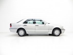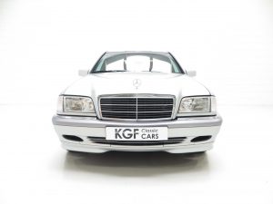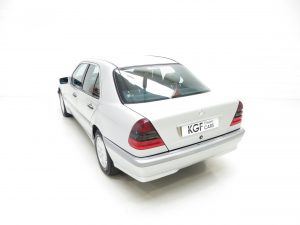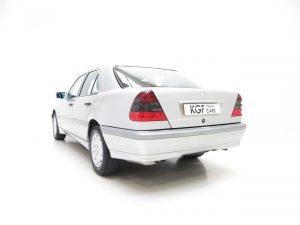 This luxury C200 Elegance was a desirable and very well equipped model within the W202 range and offers the perfect blend of modern classic usability and traditional Mercedes-Benz design cues. Finished in factory optional Brilliant Silver Metallic (code 744) the beautifully polished uniform paint finish is fantastic and reflects its low mileage credentials. Only minimal stone chips touched in carefully by the previous owner are visible upon scrutiny. All trim sections are fully intact with no damage and the supplying dealer rear screen sticker remains fitted. An excellent example reflective of outstanding Mercedes-Benz build quality and now rare in this unmolested condition.