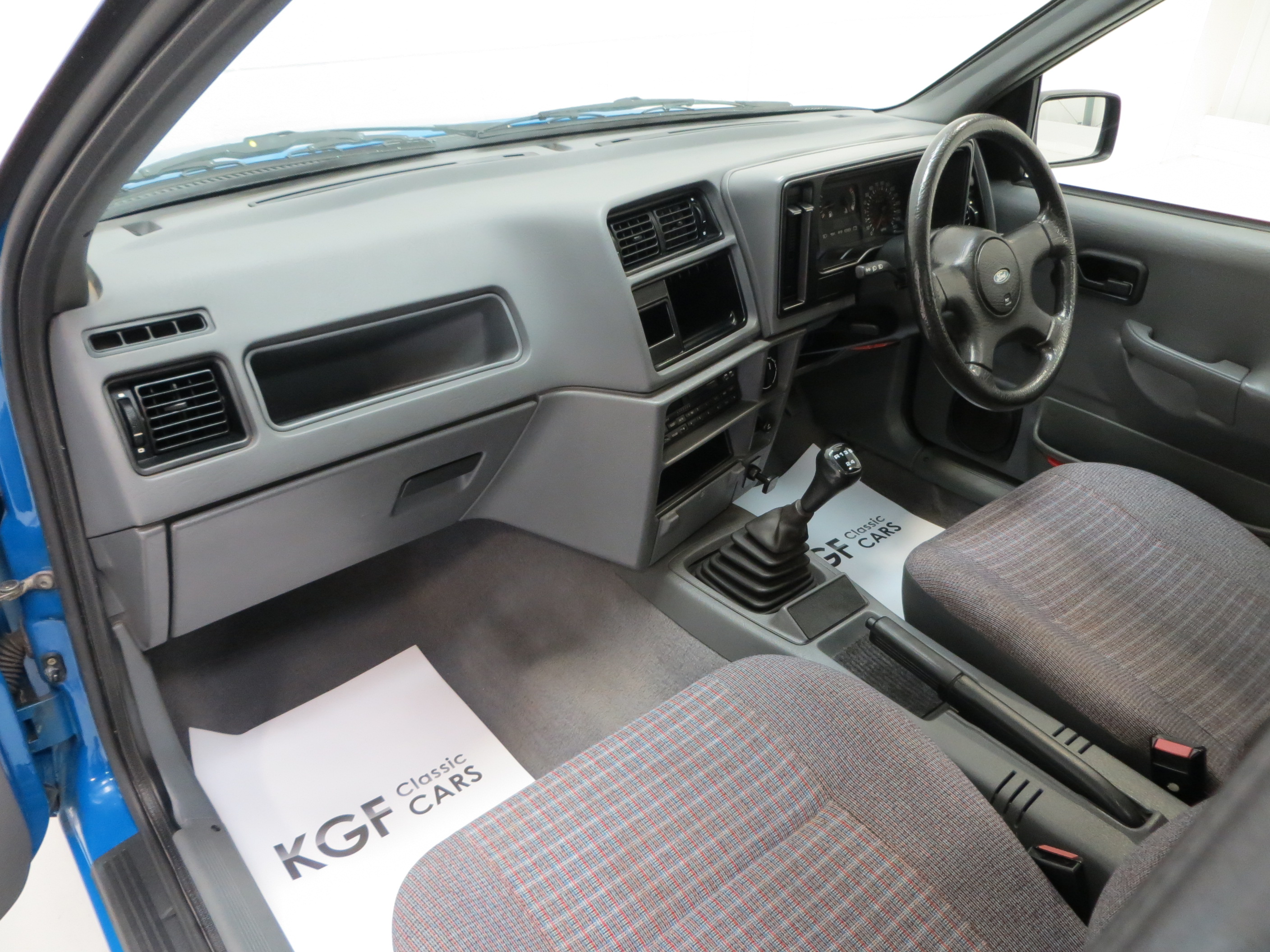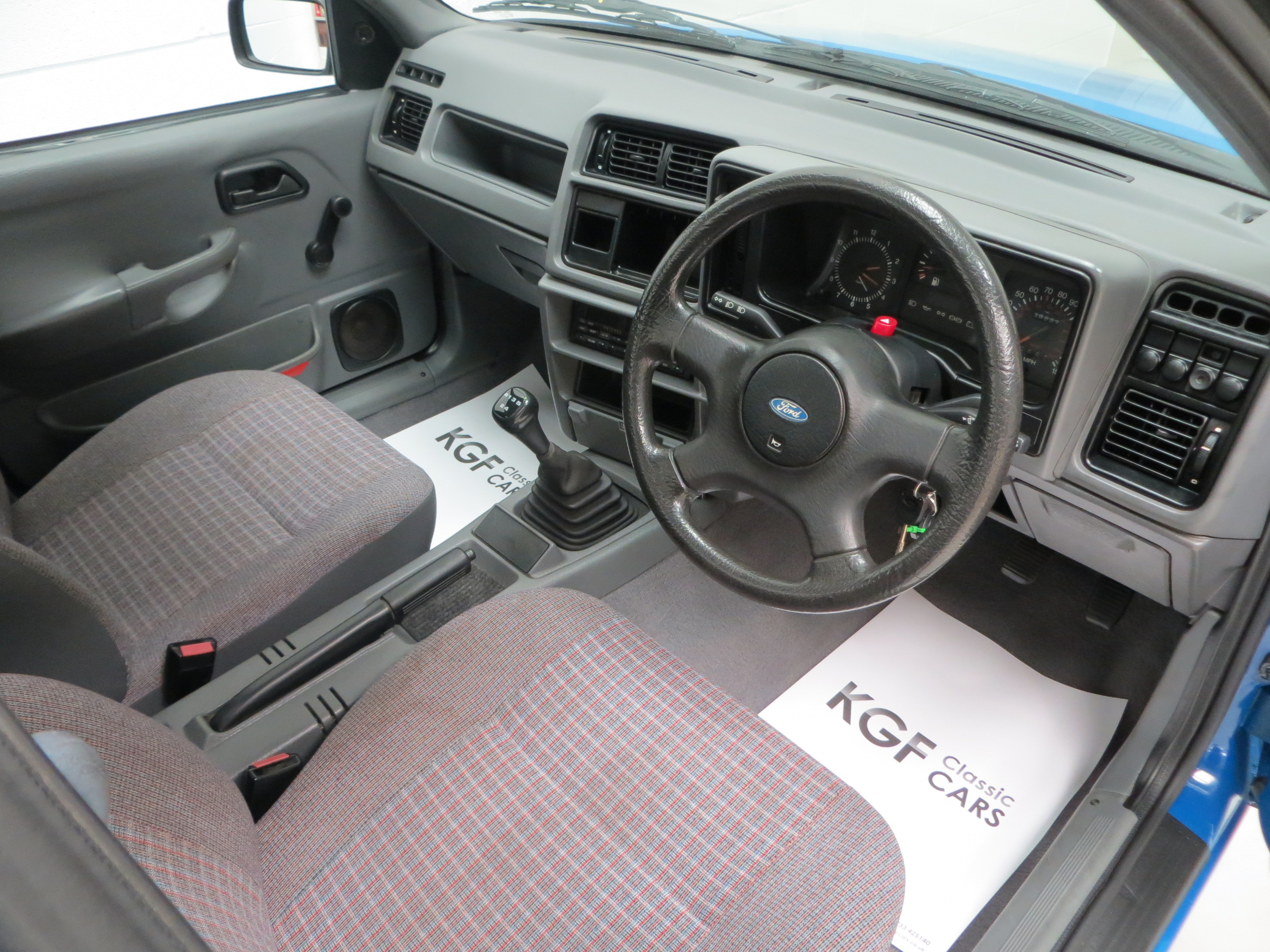 Based on the instantly recognisable Sierra, this cabin space could to the untrained eye be mistaken for Ford’s ever popular range of family cars. However, subtle suggestions towards the robust commercial vehicle range are in the form of wipe clean vinyl door cards and sparse equipment levels to include a coin box in place of the digital clock and an analogue clock instead of the tachometer. This top spec Standard model featured comforts above the entry level Popular, namely Chequers cloth trim (code 2P), grey velour carpeting and a Ford Keycode 2015 radio cassette. The upholstery is pristine with no wear at all and the carpets are clean. The dashboard, switchgear and headlining are all perfect. The vinyl door cards have suffered the common shrinking in the sunlight but remain presentable. A very functional and well looked after interior that you cannot help but smile at.