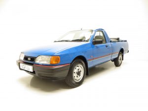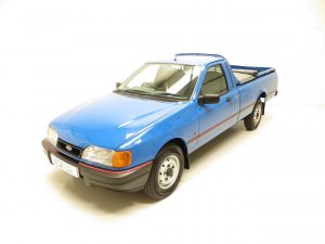 This fantastic Ford P100 Pick Up has been preserved in an incredible unspoilt condition. Owing to the inherent hard working life these vehicles were subjected to, few survive and virtually none remain as this example does. Finished in factory original Gentian Blue (code BKP), the uniform paint finish polishes up to a deep glossy shine guaranteed to amaze onlookers. Close inspection will reveal nothing more than minimal light scratches to the paintwork, barely noticeable. All factory panels are straight, damage free and display uniform gaps, and the bumpers and trims sections are excellent. Supplying dealer number plates and the original P100 side decals thankfully remain fitted, as does the security etched glass. With an incredibly clean and damage free load bed, it is justifiable to claim that this particular commercial vehicle has been somewhat workshy throughout it life, and even the rubber load mat, tonneau and support bows are as new! A humble, rugged and much revered classic Ford.