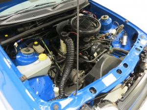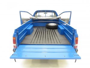 This petrol version is fitted with the original 1993cc four cylinder OHC engine developing 77bhp at 4900rpm. Arguably more relevant than the performance figures is the maximum payload of 1013kg and load bed size of 2098mm by 1097mm! The engine bay is spotless and displays original wing stamps, plates and service stickers. The 5-speed gearbox is light and easy to use and the clutch is positive.
