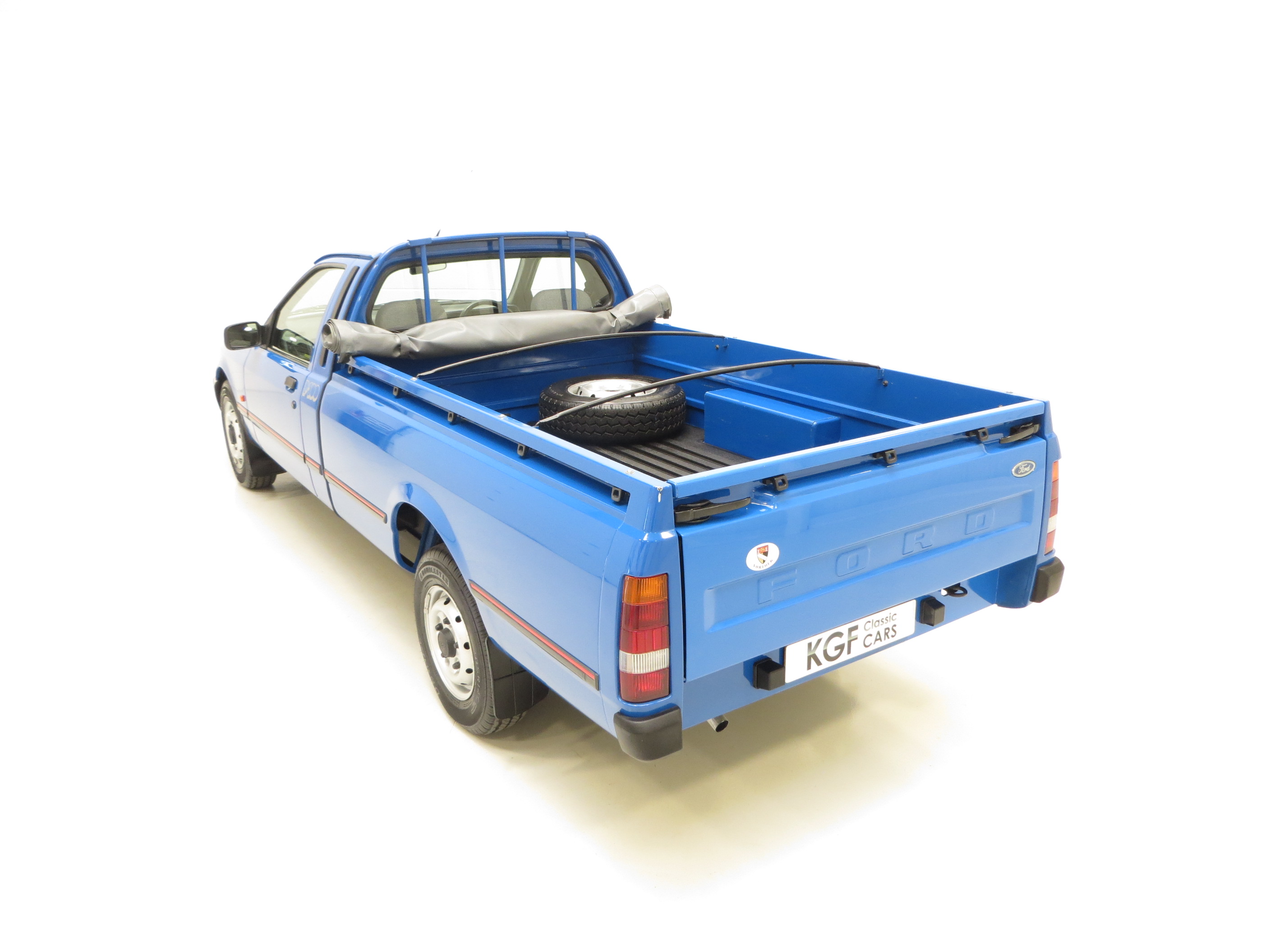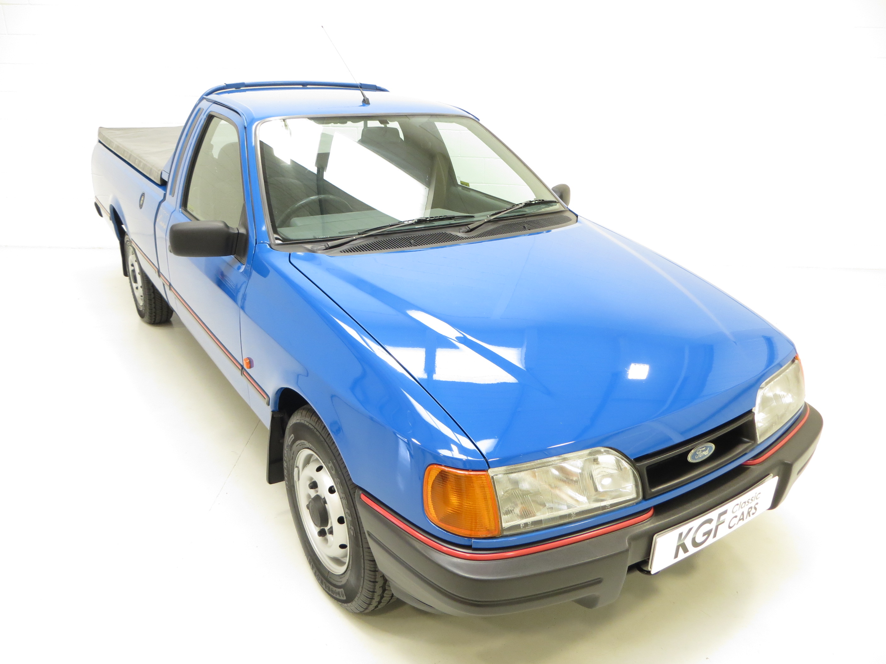 Polycarbonate front bumpers and bodyside mouldings with Cobra Red inserts, rubberised rear quarter bumpers, cab protector frame with ladder stops, remote door mirrors, high security fuel filler cap, halogen headlamps, tinted glass, laminated windscreen, double skinned load box with ribbed floor, moulded nylon lashing points, 180 degree tailgate with 90 degree hold check straps, load mat in thick close fitting rubber, tonneau cover with support bows, cigar lighter, analogue clock, coin stowage tray, electronic Ford Keycode 2015 stereo/cassette, rear mudflaps. Dealer options; front mudflaps.