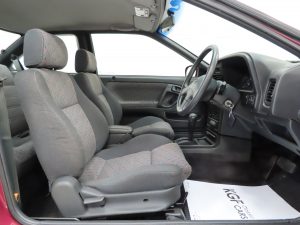 The MVi specification cloth upholstery in Grey, (Code AQ), is commensurate with the incredibly low mileage and spotlessly clean. The fabric to the seats and door cards is free from rips or tears and the seats remain firm and shapely. The carpets are pristine having been protected since showroom handover by Hyundai tailored rubber over mats and the headlining is as new. The quirky driver inclined dashboard is in perfect condition and all controls and functions operate perfectly including the factory fitted Hyundai stereo cassette. A virgin cigarette lighter confirms the car has never been smoked in and this lovely coupe interior is almost as fresh as its showroom handover day in 1995!