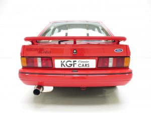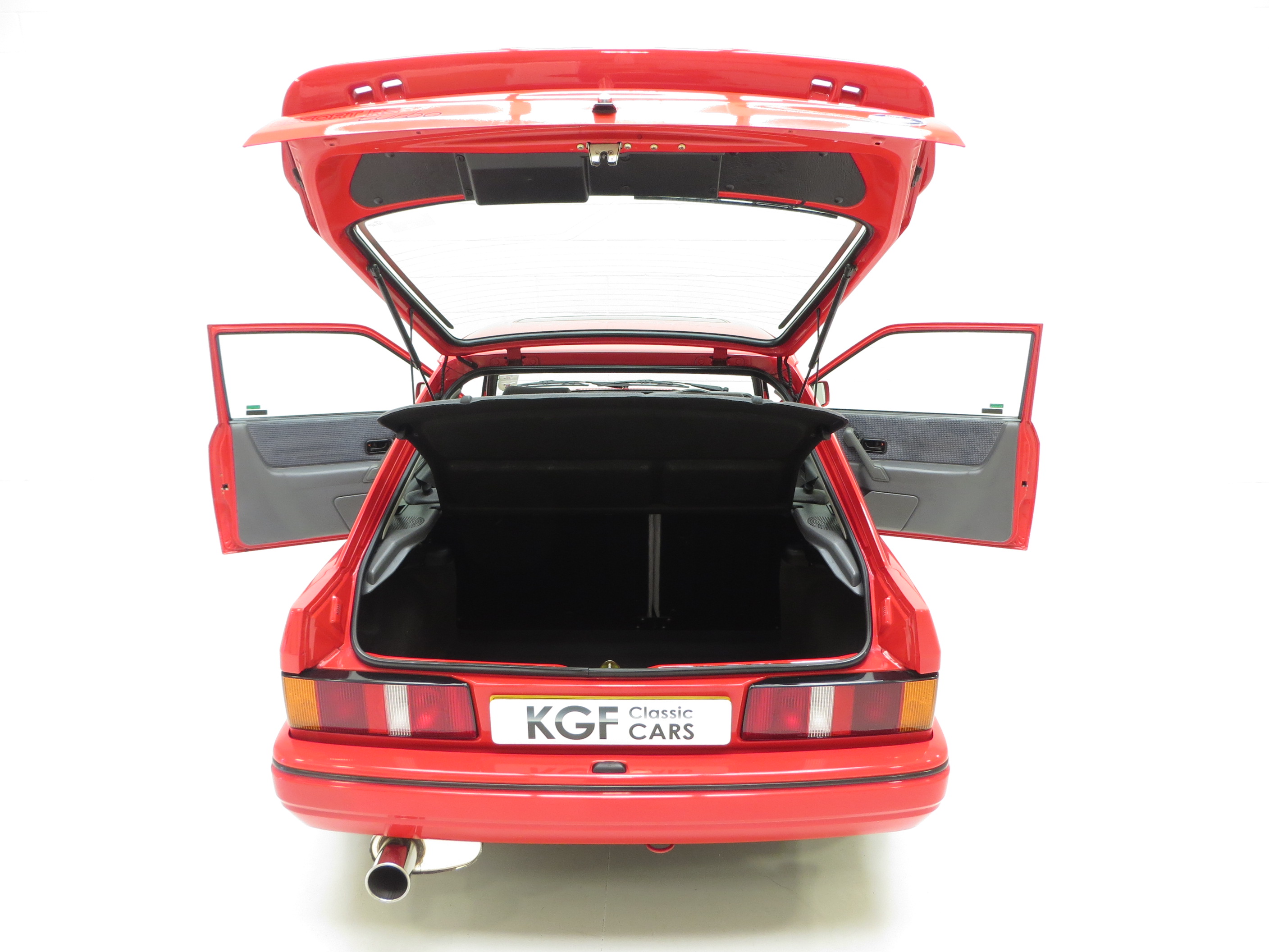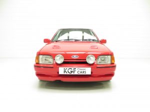 Truly incredible. Registered new on the 4th July 1991 to Mr Andrew Lloyd who remained the custodian for 16 years until being purchased by the only other owner in 2007. Both enthusiasts have cherished this performance Ford as witnessed by a complete and eye watering file comprising of numerous genuine Ford invoices up to 76,795 miles and specialist thereafter. Specialists include Turbo Technics and recently a major service and cambelt by renown experts, Harvey Gibbs of Supreme Car Services. This latest invoice dated April 2016 at 82,814 miles amounts to £1,959.07. To absolutely verify the 82,843 miles covered every MOT certificate from new is present. All handbooks, including a fully stamped service book, spare keys and instruction pamphlets are contained in the original blue Ford A5 wallet.
