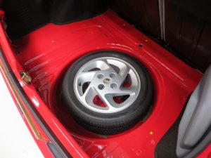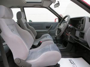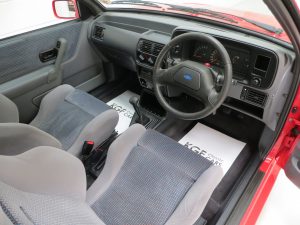 The correct light alloy 6X15 RS wheels remain it what appears to be factory paint with clearly defined and prominent part numbers and light markings. Premium Goodyear 195/50 R15 tyres are fitted all round with ample tread. This ‘hot hatchback’ slows as well as it goes with the ABS braking system designed in conjunction with Lucus Girling working perfectly.