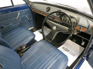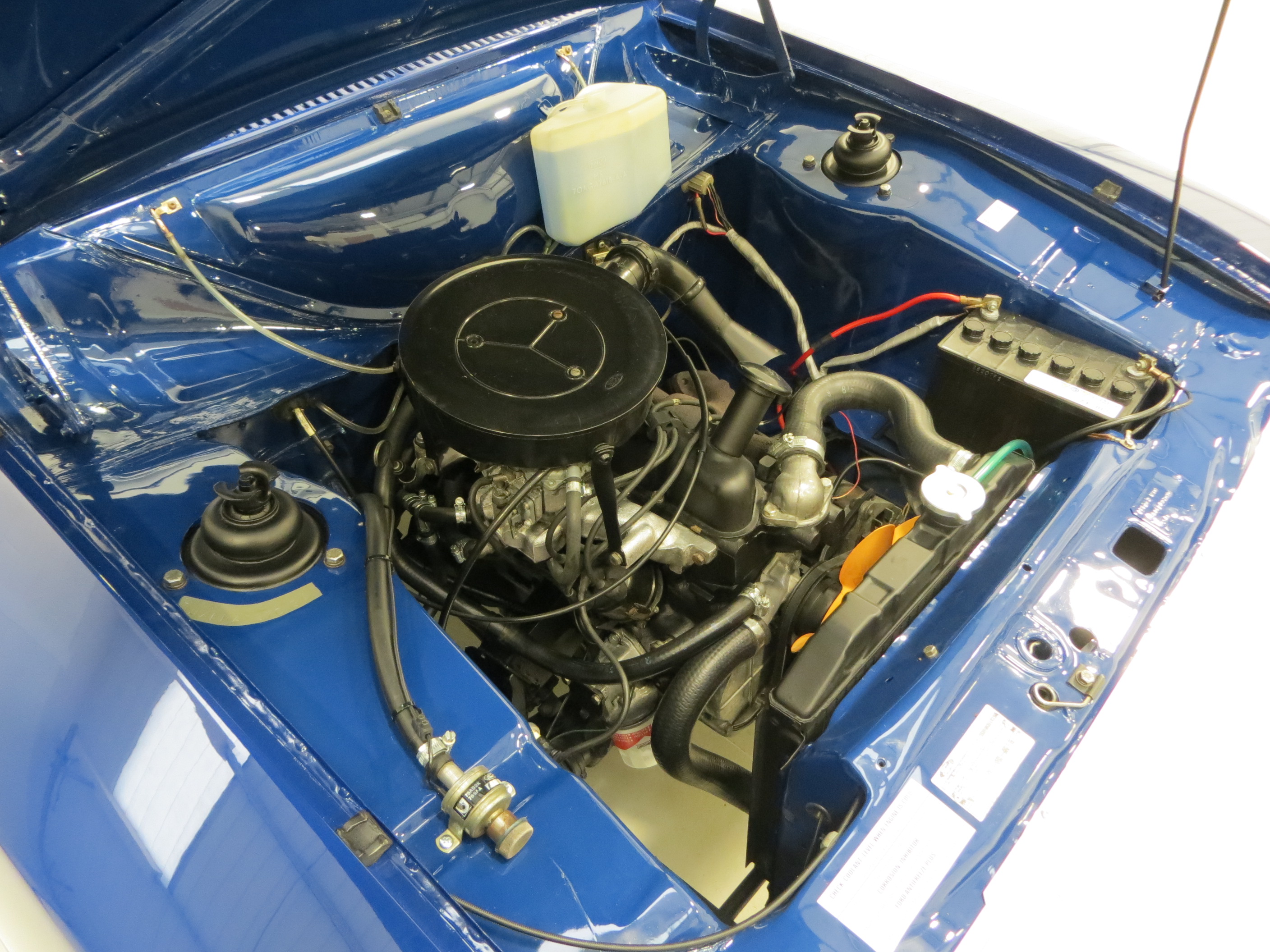 The immaculate engine bay with factory plates, stickers and wing top stampings still present is home to the original 1298cc OHV engine which fires up immediately and provides a delightful engine note. With 57bhp, 0-60mph in 15.9 seconds and a top speed of 90mph current day usage is possible. The diaphragm spring type clutch feels positive and smooth with a precise four speed gearbox. An absolute joy to operate and a true reflection of the low mileage this car has covered.