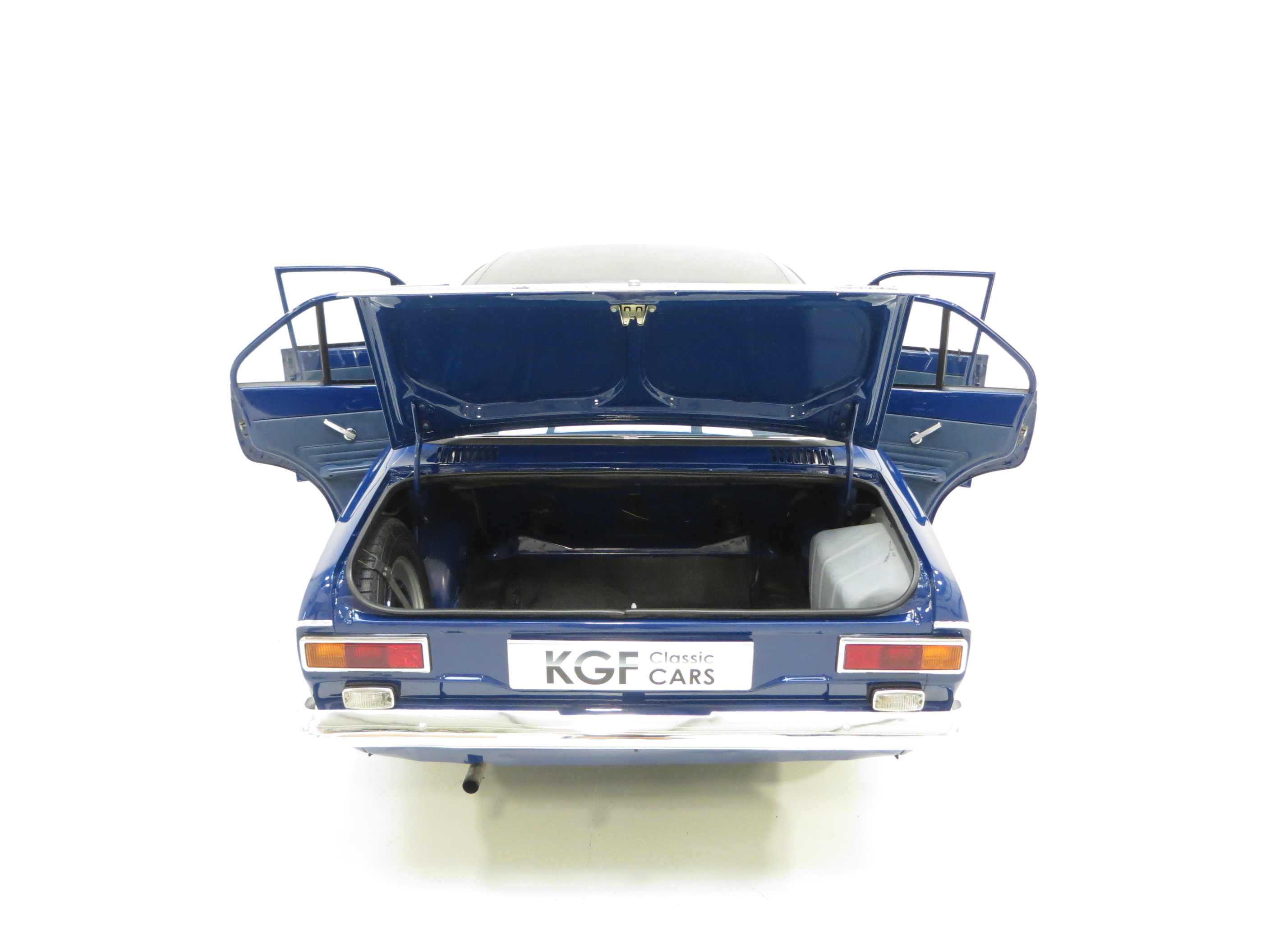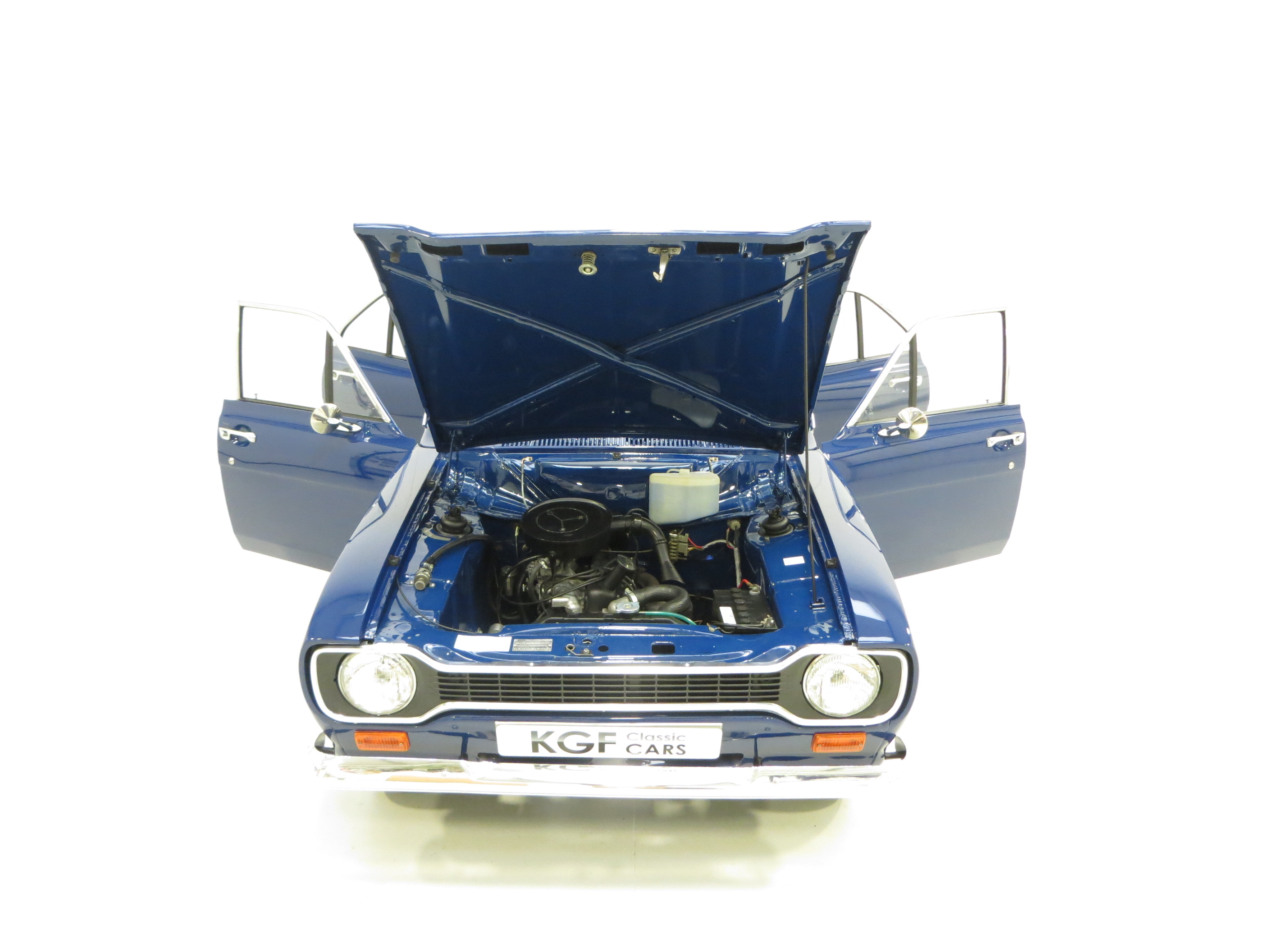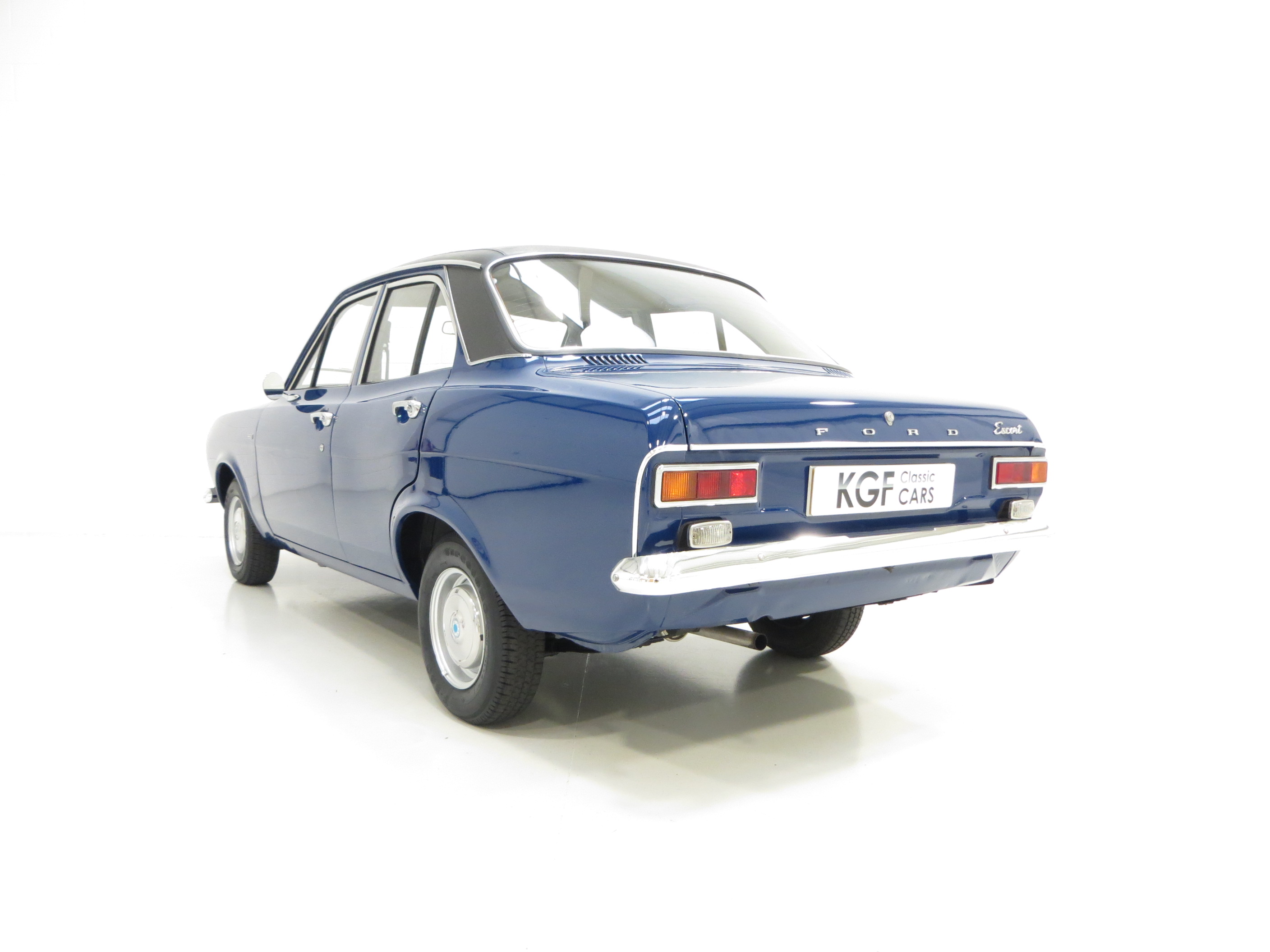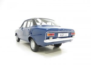 The exterior of this stunning Mk1 Escort is simply superb in every respect having been professionally detailed. Finished in Ford Royal Blue (colour code G5), the paintwork has a deep gloss shine which is outstanding and an absolute joy to polish. The panel fit is pleasingly good with uniforms gaps for the era. All trim sections are excellent and the 1300L wing badges remain intact. The factory optional black vinyl roof is exceptional with no lifting or damage and the glass is the correct Ford Triplex factory fitment. Original steel number plates remain fitted to the vehicle. An example that proudly displays its low owner and low mileage credentials, and one which has enjoyed a very cossetted existence. A real rare survivor.