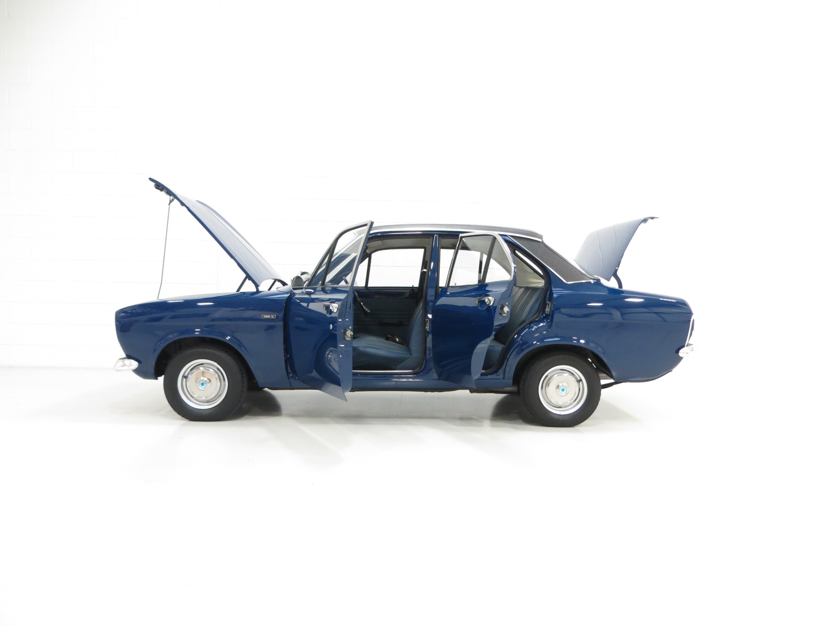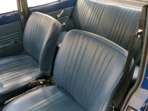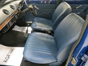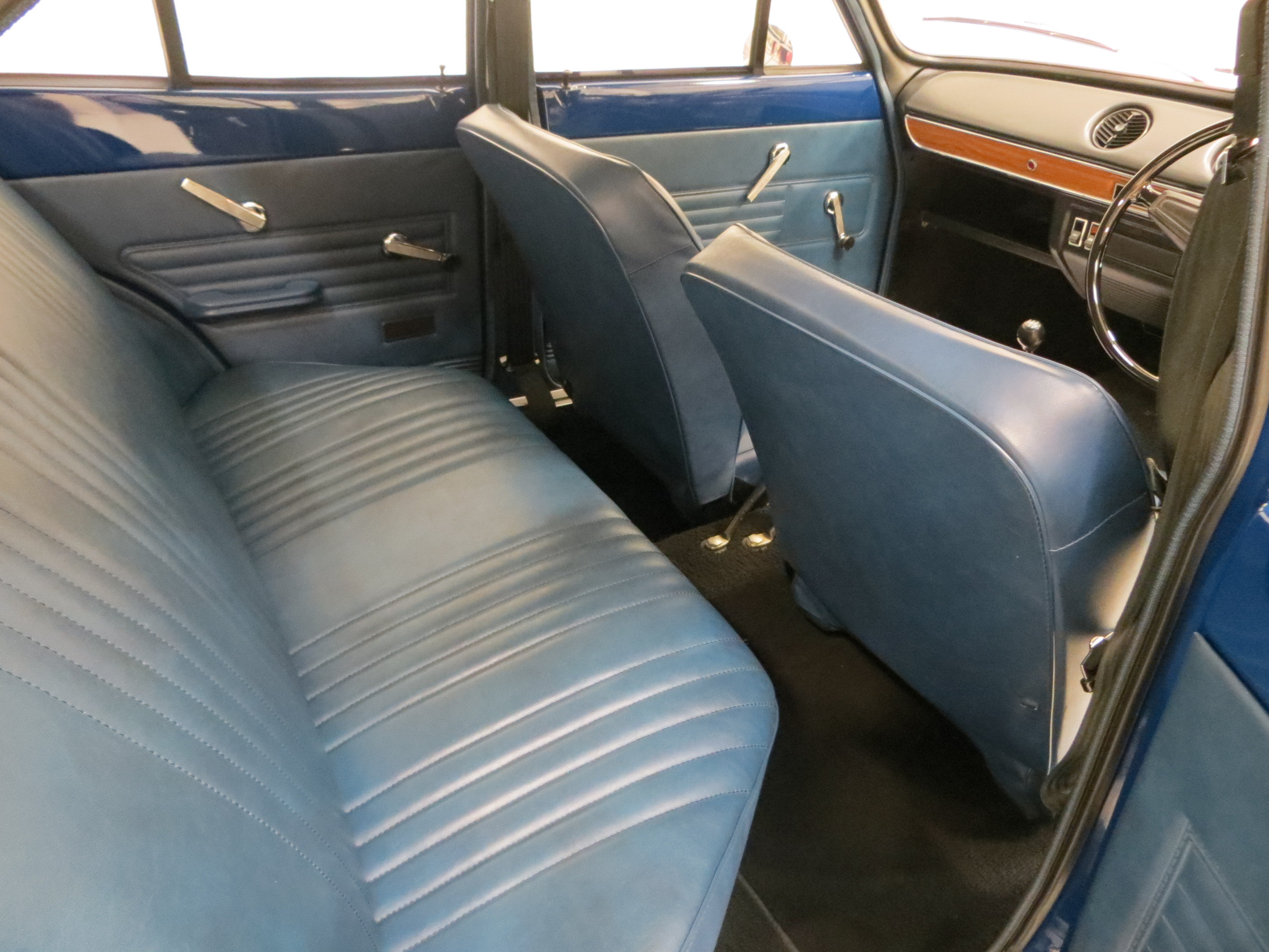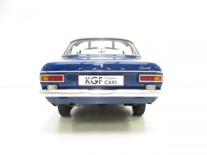 The exterior of this stunning Mk1 Escort is simply superb in every respect having been professionally detailed. Finished in Ford Royal Blue (colour code G5), the paintwork has a deep gloss shine which is outstanding and an absolute joy to polish. The panel fit is pleasingly good with uniforms gaps for the era. All trim sections are excellent and the 1300L wing badges remain intact. The factory optional black vinyl roof is exceptional with no lifting or damage and the glass is the correct Ford Triplex factory fitment. Original steel number plates remain fitted to the vehicle. An example that proudly displays its low owner and low mileage credentials, and one which has enjoyed a very cossetted existence. A real rare survivor.