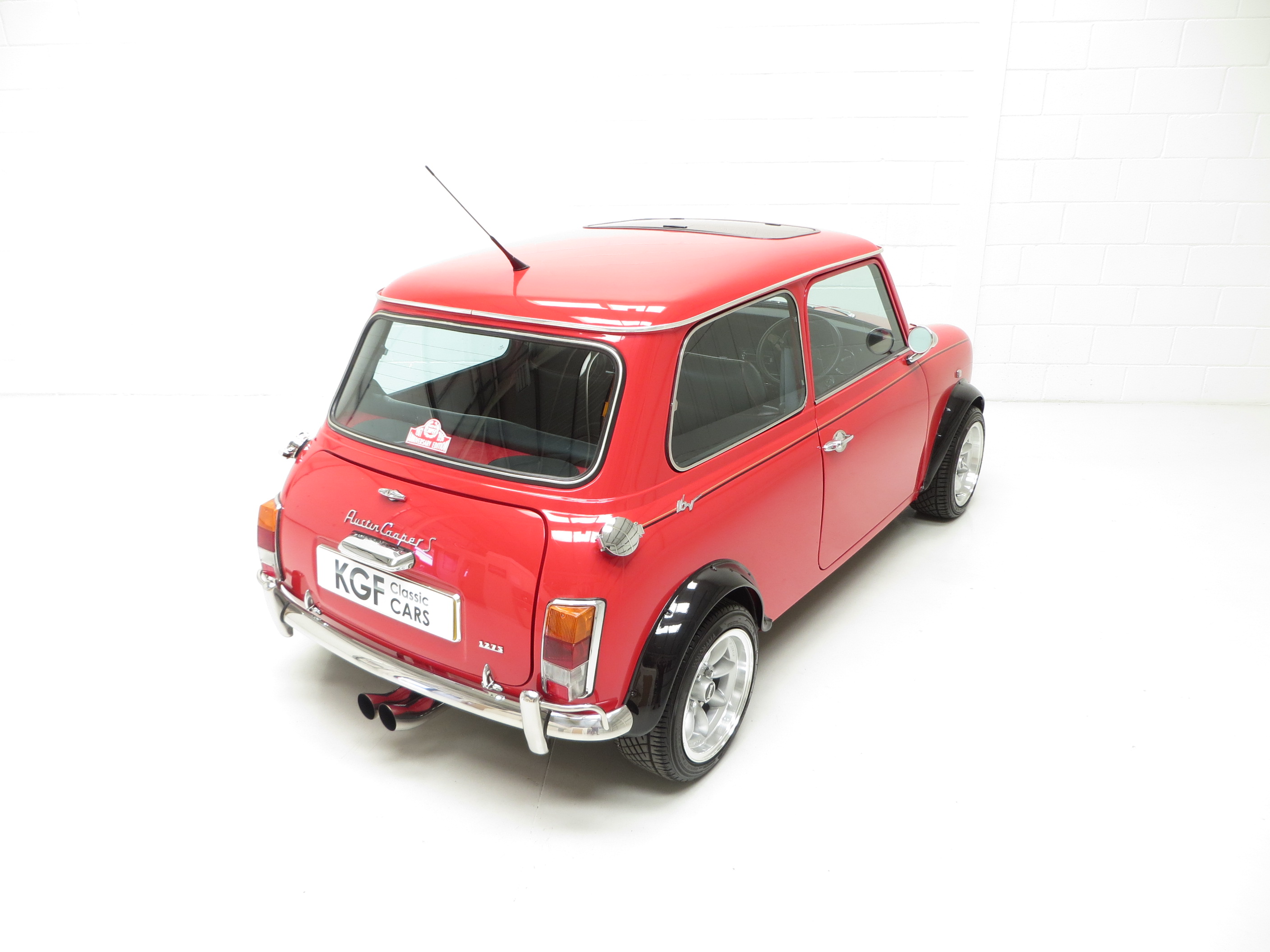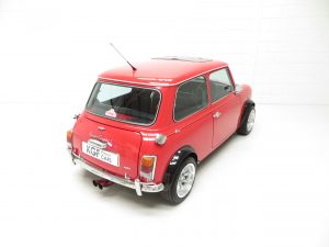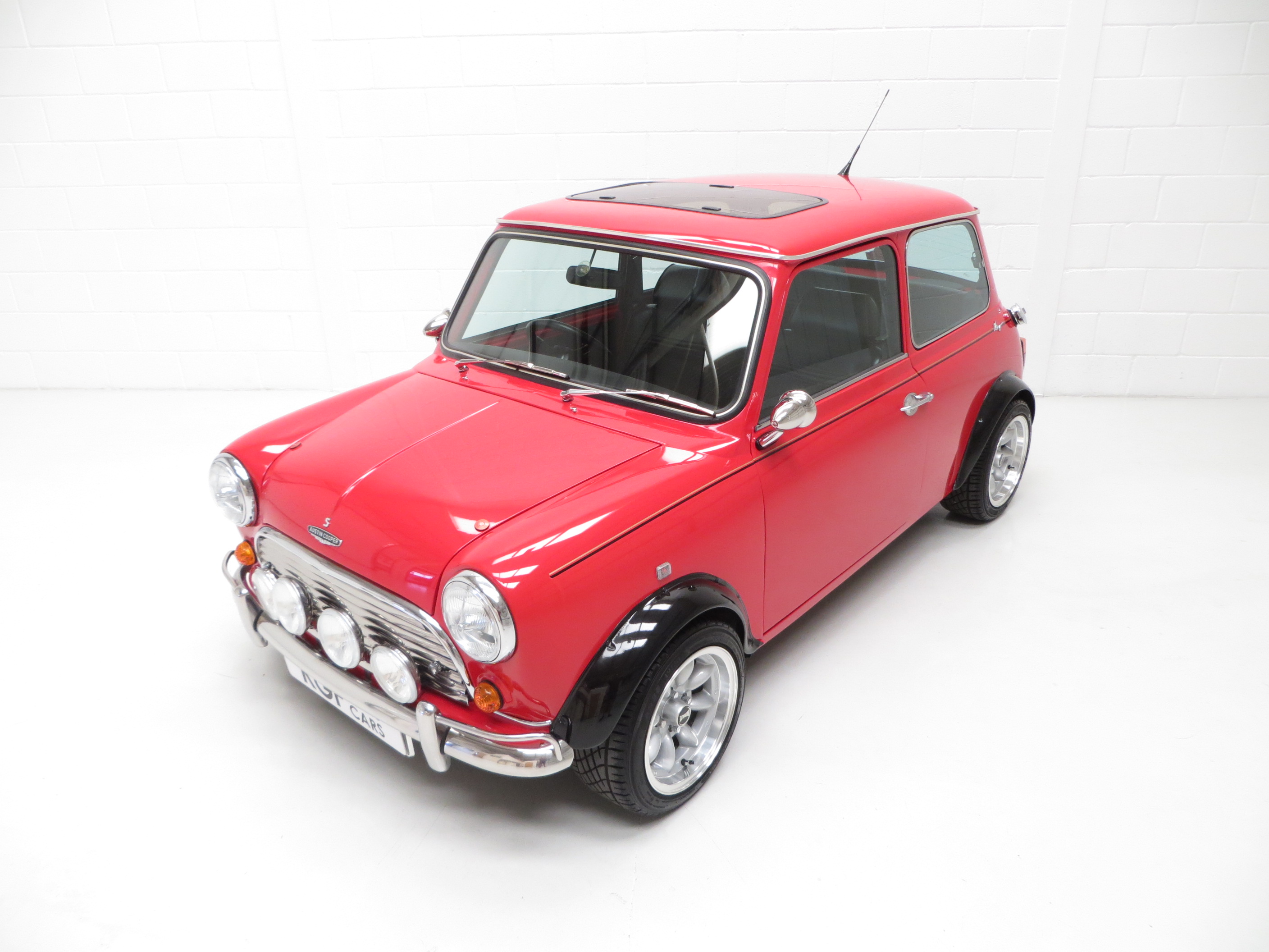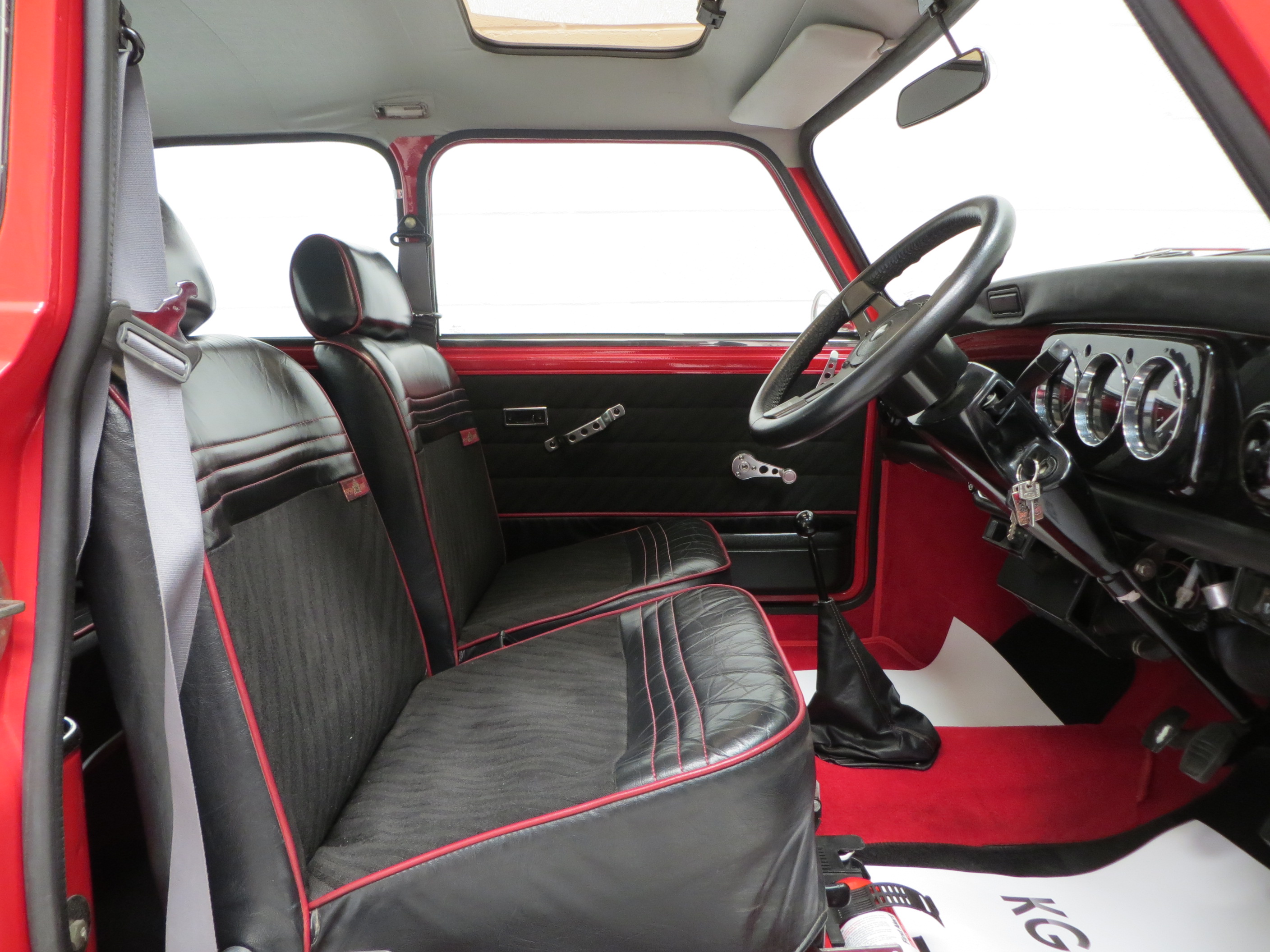This exhilarating car started out as an Austin Mini Thirty limited edition in Cherry Red. In 2013 a truly incredible transformation project was undertaken to create the very special vehicle offered today. Finished in Flame Red, this Mini instantly grabs your attention with a vibrant shine and beautifully polished finish from the expensive bare metal repaint, fully documented in a photo album. Structurally perfect with absolutely no corrosion to the panels, the fully de-seamed shell conversion has been carried out to an impeccable standard to create a clean aesthetic appeal. Virtually flawless, even under close scrutiny you will struggle to detect a blemish. All brightwork is excellent aside from very faint pitting on the rear number plate lamp cover. This very unique example really does mean business!