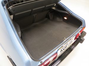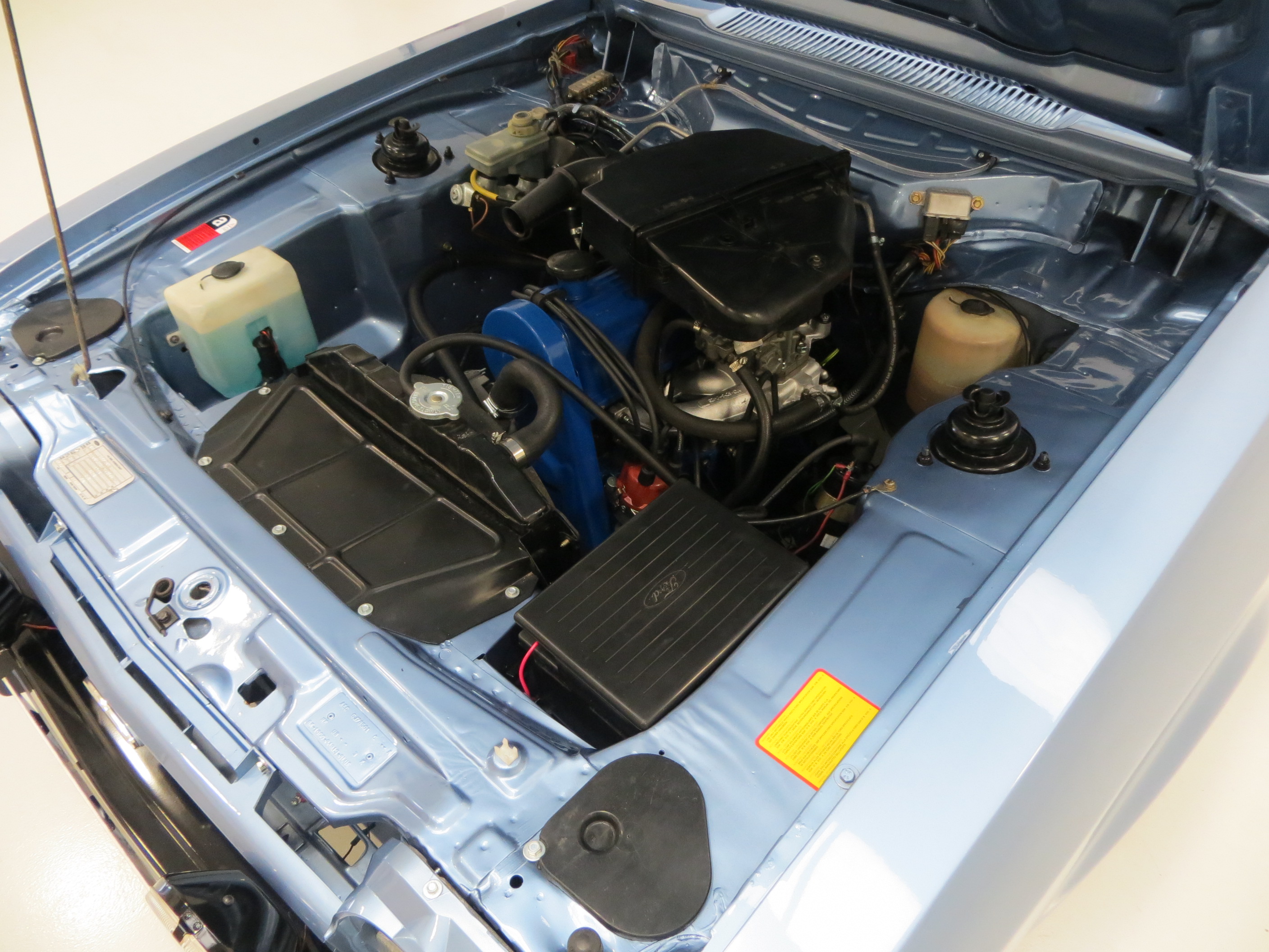 The interior is in excellent condition finished in the ‘Truro II’ cloth trim (code XE) with matching door and quarter panel inserts. The original material to the seats is spotless and remarkably wear free and the colour matched carpeting and headlining are both clean and free from discoloration. The dashboard displays just one hairline crack and two very small drill holes to the top. All controls fully function including the two-speed heater fan and analogue quartz clock. A period Ford stereo is fitted but is not working. An iconic and instantly familiar classic Ford interior.