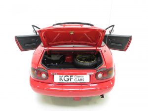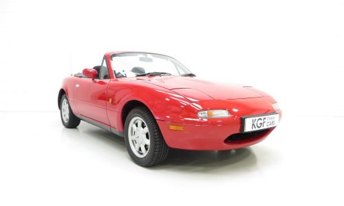 This astonishing example was registered new by Runcorn Mazda in Gwent on 8th July 1992 to first owner Richard Roseby in his company name MLR Computing. Upon his retirement the car was put into his name. The history file is simply incredible starting with every MOT ever carried out to fully track the exceptionally low mileage of 12,678 miles. Furthermore, the original Mazda A5 wallet contains the service record, handbook, supplements, radio guide, factory build cards and sales person business cards. The service record displays nine Mazda Main Dealer service stamps with accompanying invoices, and further receipts and a manual log of servicing has been upheld. Importantly, an invoice in the file confirm a major service, cambelt renewal and brake overhaul was carried out in August 2015 with just 15 miles covered since!