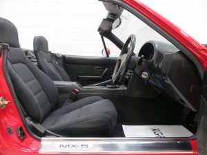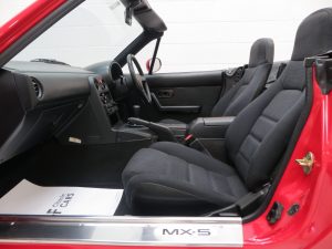 This incredible preserved Mazda MX-5 is finished in its factory original coating of Classic Red (colour code SU). The paintwork boasts a pristine deep gloss shine and impeccable finish with only miniscule markings, commensurate with the super low mileage covered. The showroom fresh appeal with absolutely no colour fade or deterioration to the finish is testament to the only keeper from new being fastidious about careful storage and minimal use. A tiny ding to the driver’s door, touched in scratch to the passenger door and a small paint bleb above the rear number plate are barely noticeable and have been left untouched so as to preserve the cars originality. The sills are spotlessly clean and the underside condition is truly commensurate with a pampered vehicle of such privileged credentials. The black canvas hood and tonneau are in perfect order with a tight fit and no cracks or damage. The rear plastic window is clear with only minimal faint hairline scratches. Even the often damaged or removed Mazda decal to the front bumper remains fully intact! The epitome of a modern classic sports car, preserved to the highest standard.