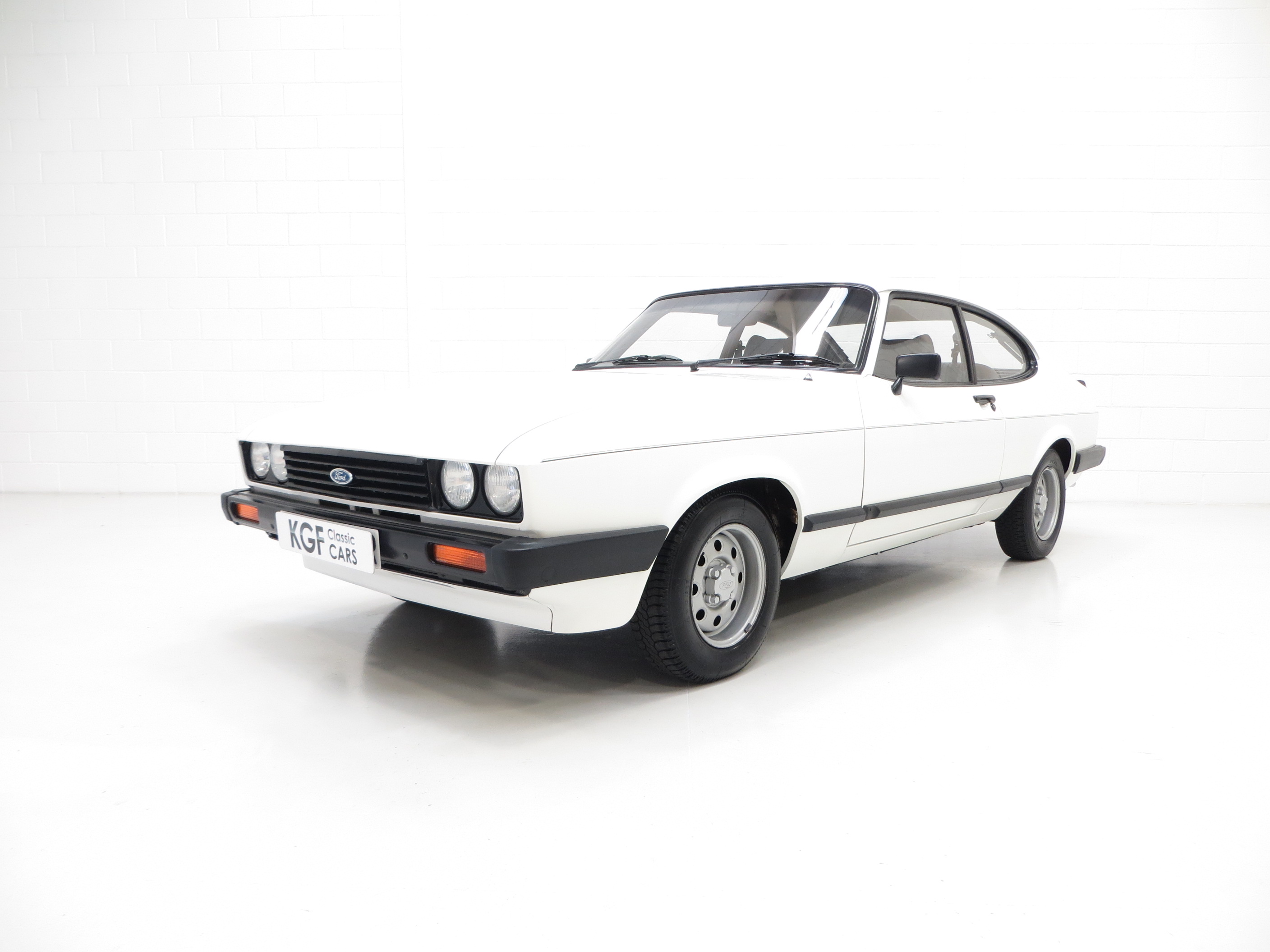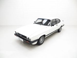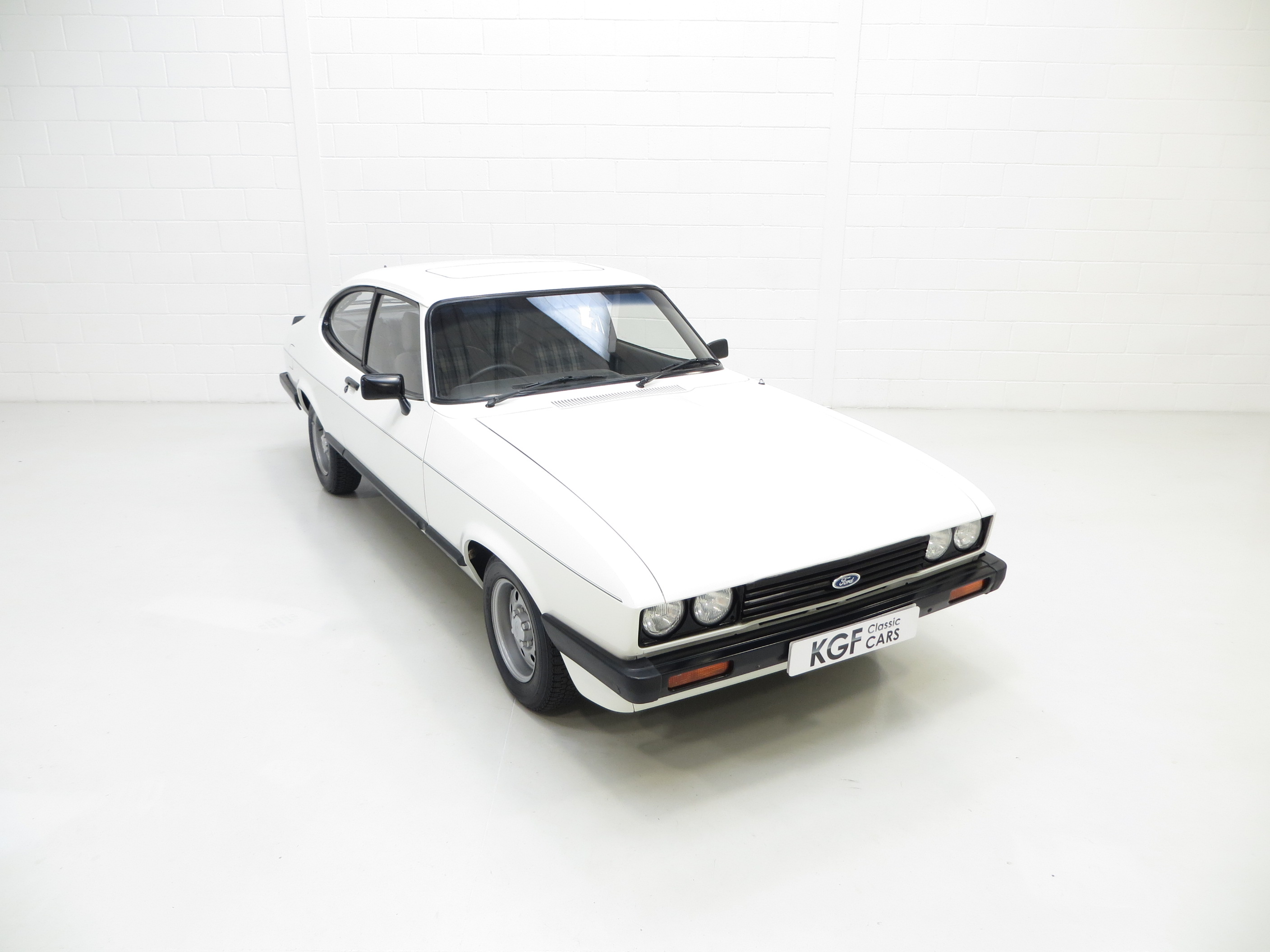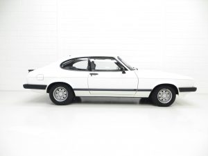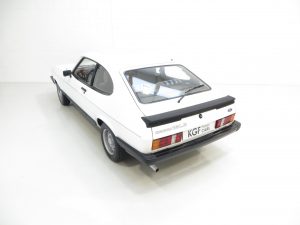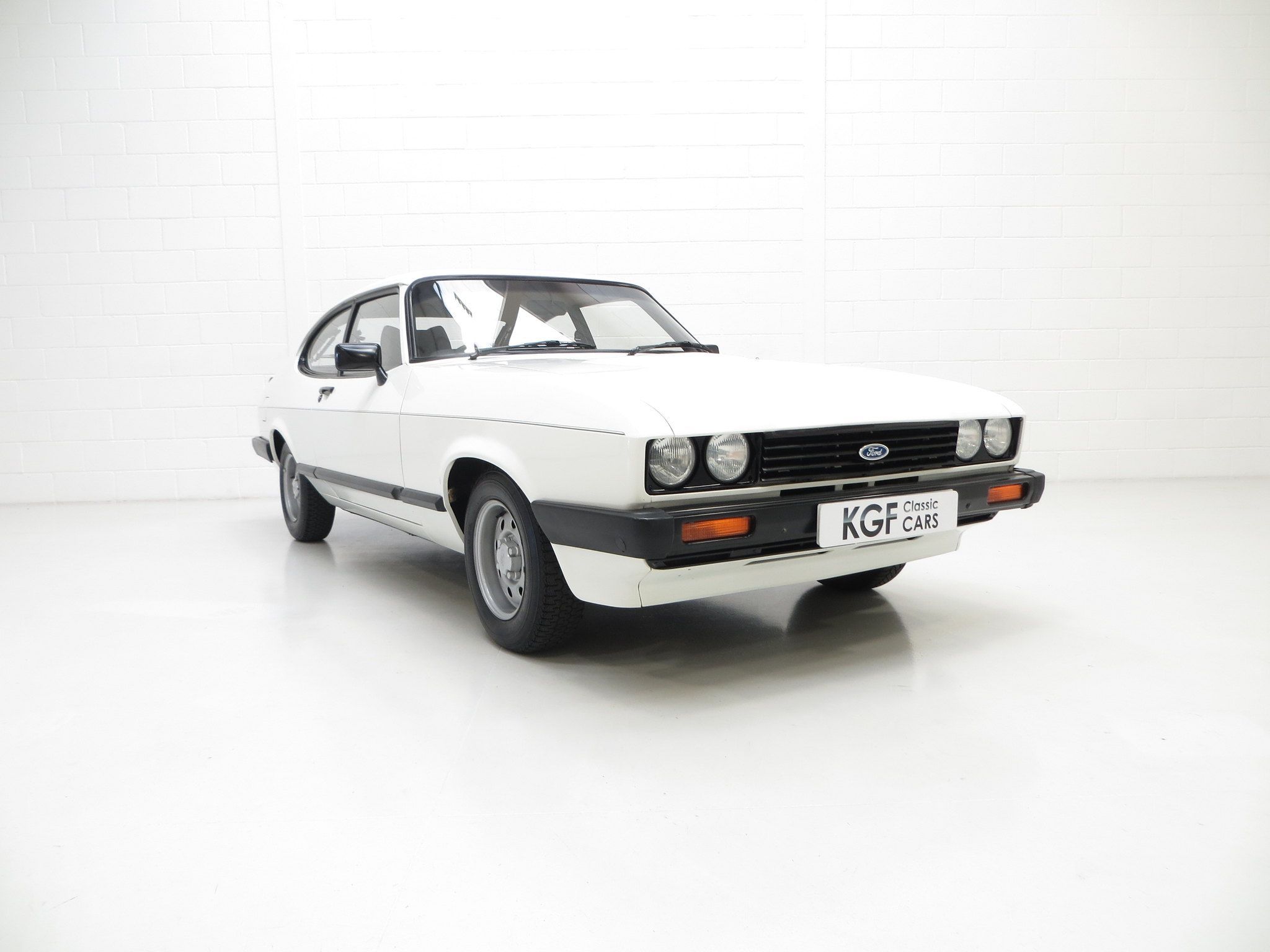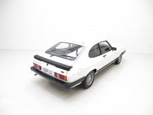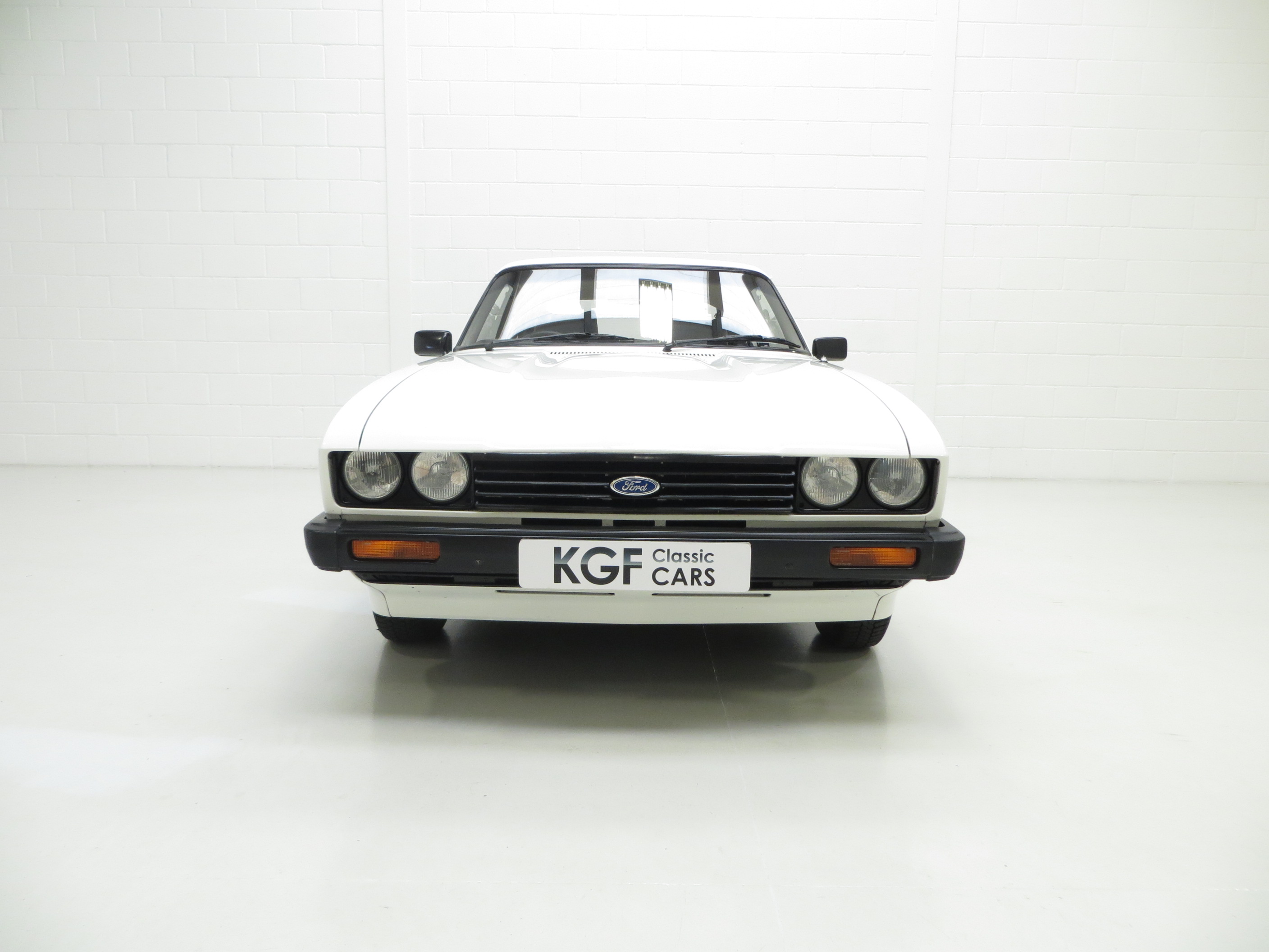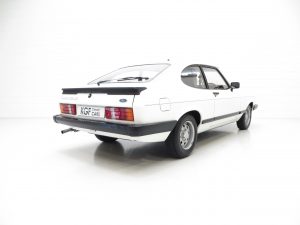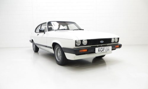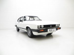 This remarkable and very rare base model Capri LS is finished in Ford Diamond White (code B3). The factory original paint finish has been preserved incredibly well owing to the amazing genuine 23,433 miles covered and careful storage from new. All factory panels are straight with linear gaps, and only very close scrutiny will reveal minuscule age related markings. Worthy of mention is a small undulation to the nearside front wing. Both front wings and the scuttle panel still have the factory stampings clearly defined. The trim sections, glass, lights and badges are as new including the optional rubberised rear spoiler. The underside is free from an excess application of underseal to allow inspection of this cars genuine unmolested appeal. A superbly preserved and unspoilt example of Ford’s iconic Capri, and very rare in basic LS specification. One for the serious enthusiast.