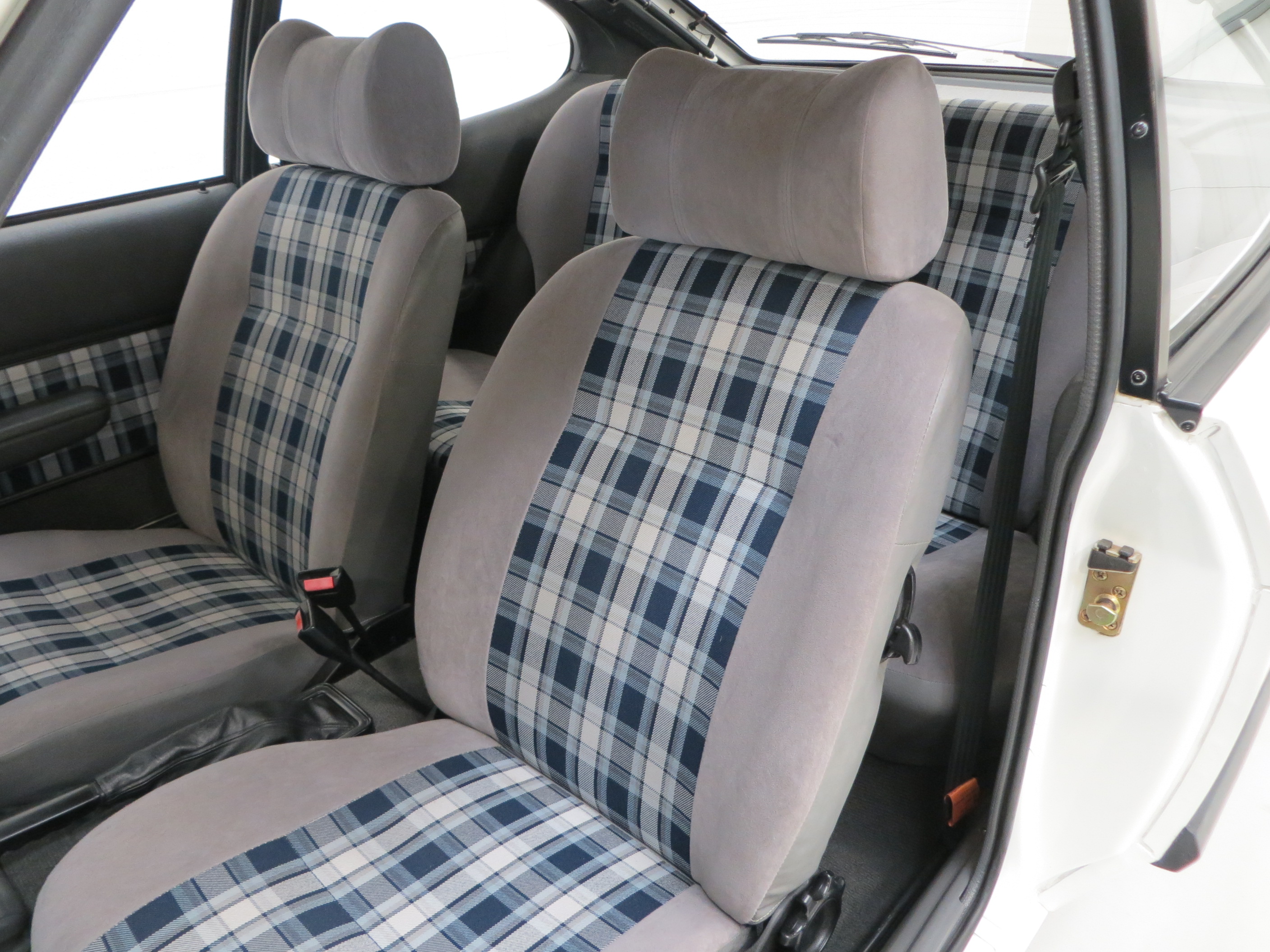 Wide section black painted bumpers, black louvered grill, integral front spoiler, four halogen headlamps, laminated windscreen, tilting/sliding steel sunroof, remote control driver’s door mirror, airflow face-level vents, centre console, glovebox with lid, lock and illumination, tailgate wash/wipe, ammeter and oil pressure gauge, tachometer, quartz analogue clock, courtesy lights, perforated grey headlining, front reclining seats, tilting/sliding steel sunroof, Ford RST 21P stereo cassette. Factory options; Boot spoiler.