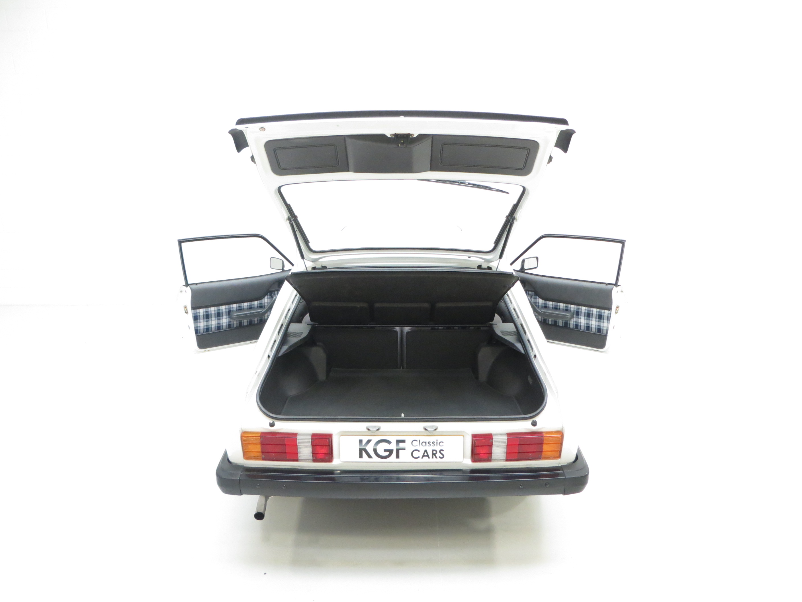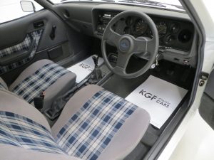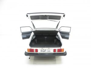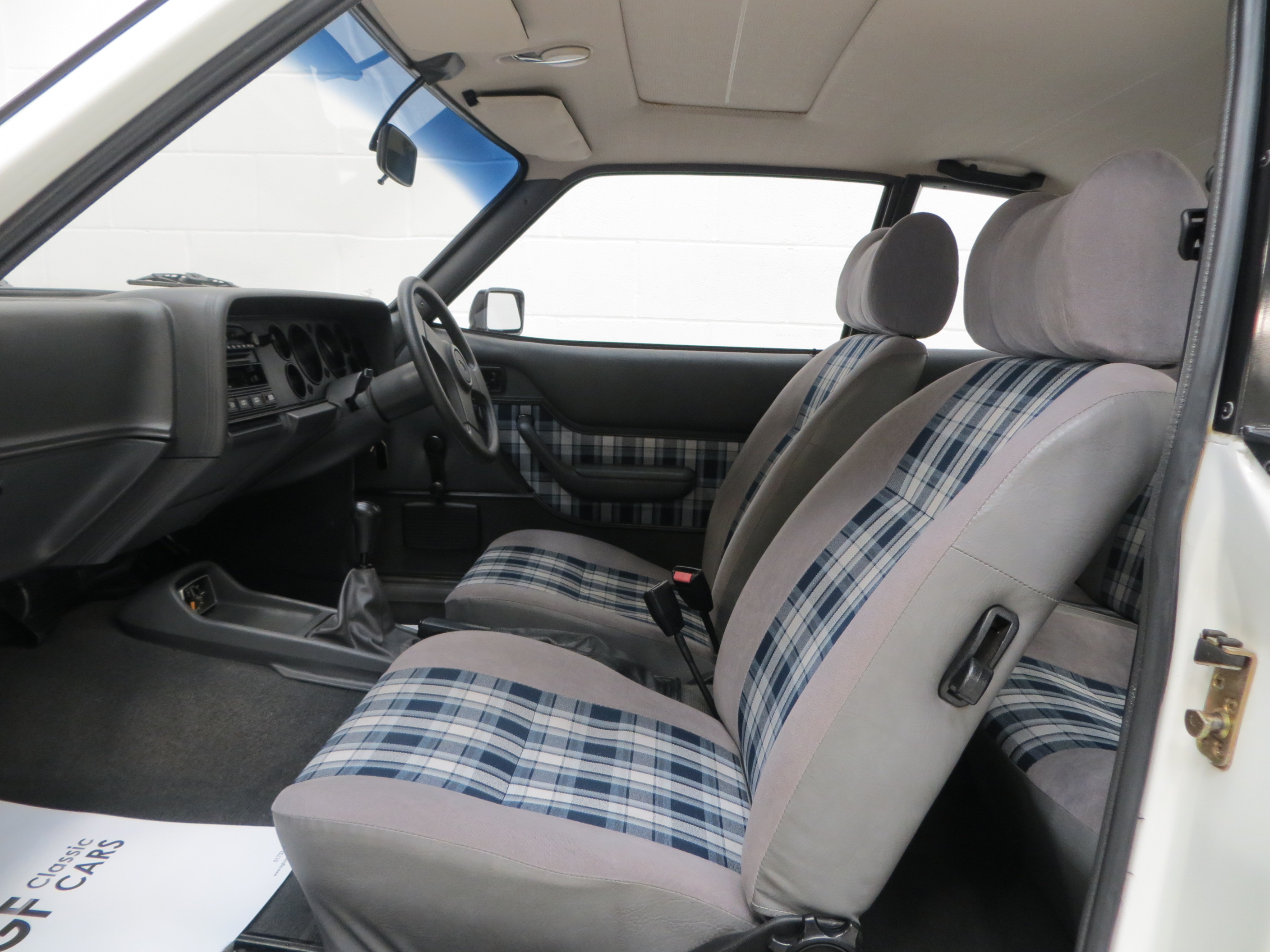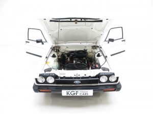 The interior of this cossetted example is absolutely worthy of the often misused term ‘timewarp’. The ‘Carla’ crushed velour in Navy check colour scheme (code F0) is virtually perfect with no wear, fading or markings, commensurate with the exceptionally low mileage covered. All trim sections are as new including the fully intact dashboard free from cracks and the pin straight uncut rear parcel shelf. All functions and controls operate seamlessly including the Ford RST 21P stereo cassette and quartz clock. Further hints towards minimal usage and devoted care are displayed in the form of the steering wheel and gear knob with natural veins still prominent and the unused cigar lighter. Lifting the boot carpet reveals the original jack, manufacturer stickers and a light coating of protective wax which has been applied by the careful previous owner and easily removed if desired. Simplistic, unspoilt and exactly as Ford intended with none of the Capri magic compromised.