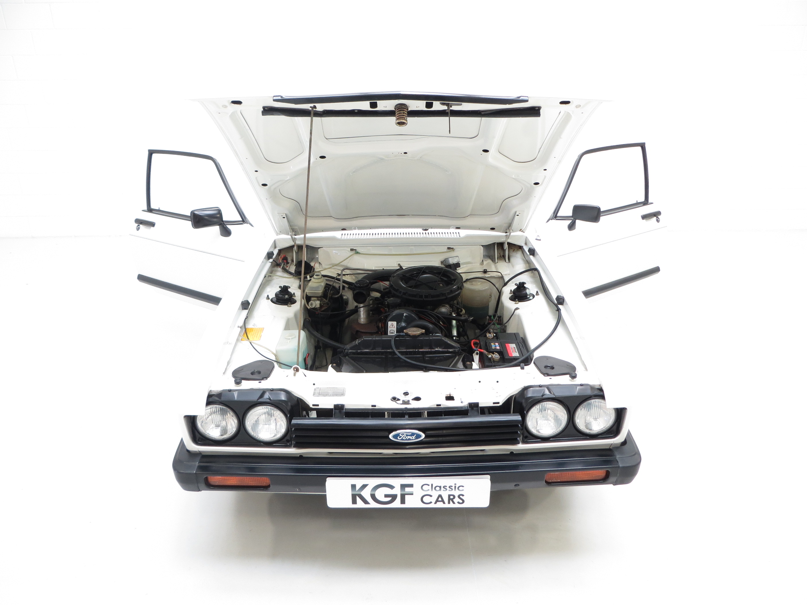 Registered new on 1st May 1984 by Ford Main Dealers Reg Scull Motors Ltd this amazing example has covered a mere 23,433 miles from new. The extensive history file includes the original service record displaying nine stamped entries with additional maintenance records to show conscientious upkeep despite the very low miles covered. Many previous MOT certificates further support the mileage. Dealership supplied handbooks, guides and radio instructions have also been kept. Completing the history file is three sets of keys including the original torch key.