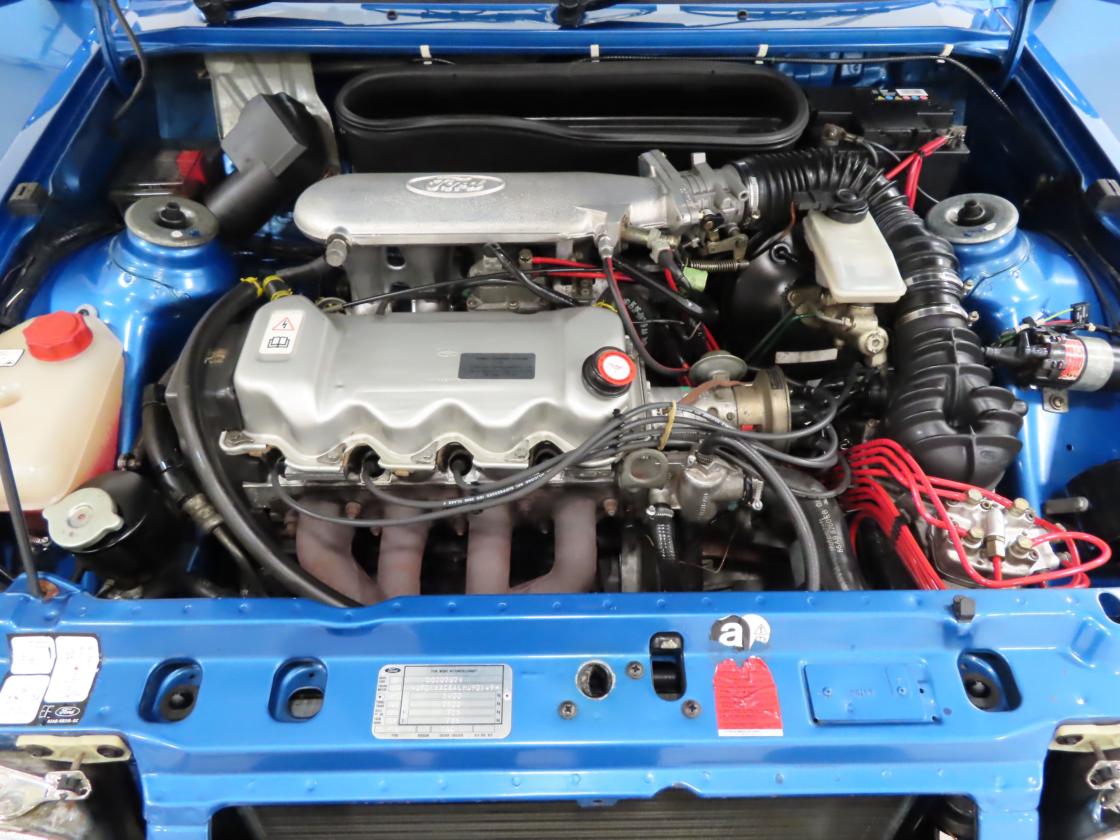 Registered new on the 17th November 1987 by Ford main dealers, Hooley’s Garage Ltd of Nottingham, the car was registered to a Mr Kemp of Arkwright Securities Ltd who specified when new factory options of metallic paint and alloys wheels. Mr Kemp also specified power assisted steering to be fitted when the car was brand new at a cost of £990+VAT. The car has covered a genuine 32,279 miles from new with a substantial history file containing supplying Ford Main Dealer service invoices, receipts and virtually all MOT certificates until 2008 when the car joined a prestigious collection. All handbooks are included along with the original service book with early stamped history and two keys are present. In December 2021, the car has undergone a major service using genuine Ford parts, cambelt, auxiliary belts, and brake overhaul. This car will appeal to the retro car lover and Blue Oval collector alike looking for one of the finest preserved examples.