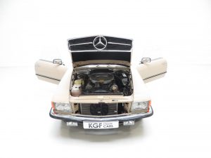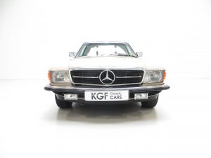 Registered new on the 26th May 1982 by Mercedes Main Dealers Bradshaw Webb (Chelsea) Ltd, this amazing example has covered a mere 18,971 miles with just three traceable keepers. The history file is simply incredible starting with the original Mercedes plastic wallet housing the service book, handbook and absolutely all dealership literature including the factory build card. Furthermore, a huge collection of main dealer and specialist invoices and receipts portray this cars cosseted existence and every MOT certificate from three years old serves to verify the mileage.