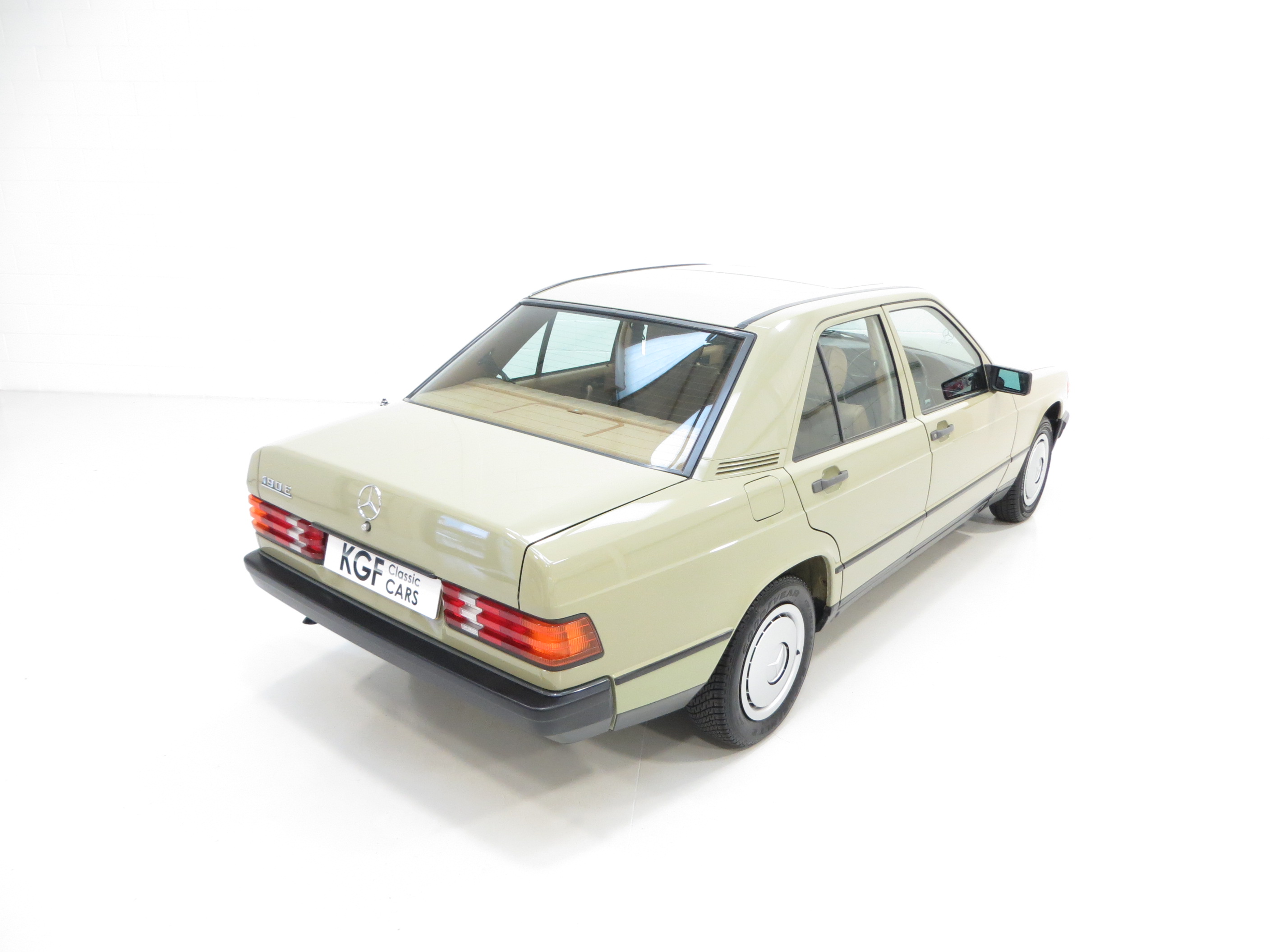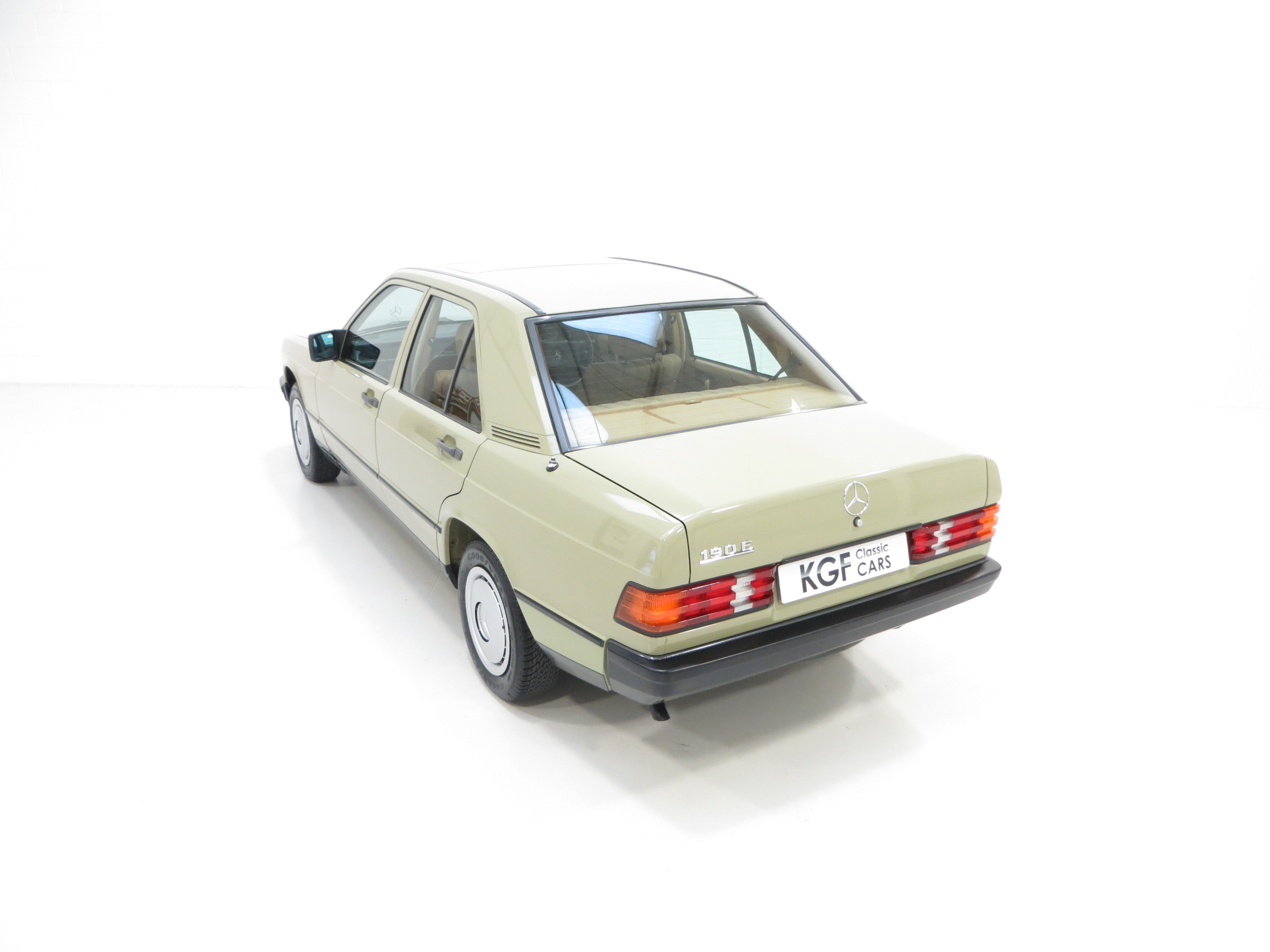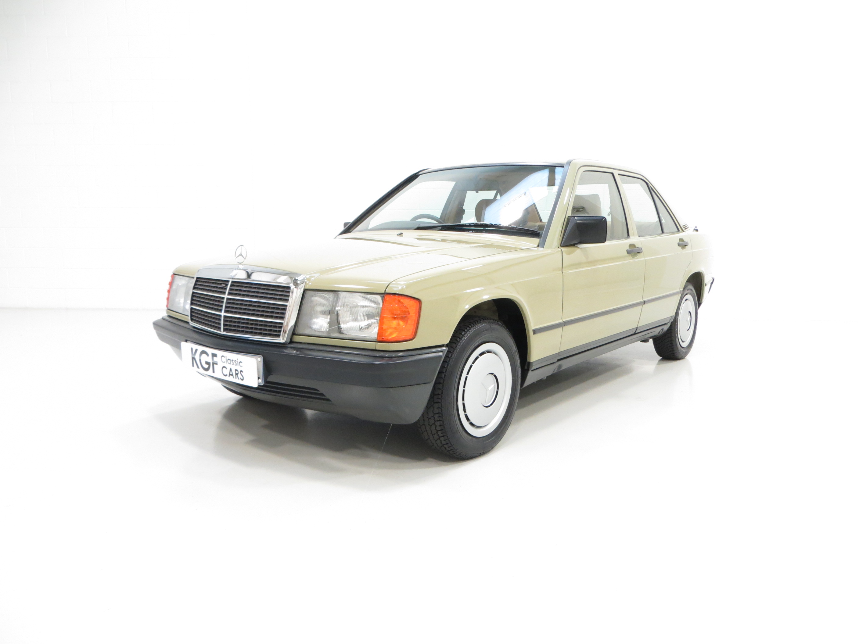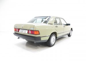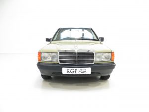 This exceptional early example of the W201 Series 190E is finished in its factory coating of Moss Green (code 803), a delightfully rare and period colour which along with the condition instantly sets this aside from the usual offerings. The paintwork boasts an almost flawless shine and uniform finish with only a light chip to the offside rear corner worthy of mention. This beautiful car has been meticulously preserved and its low mileage credentials are clear to see. All trim, glass, lights and badges are perfect, and supplying original dealer number plates and rear screen sticker affirm the absolute originality. A truly outstanding example of the superbly engineered and iconic 190E, a byword for exemplary Mercedes-Benz craftsmanship.