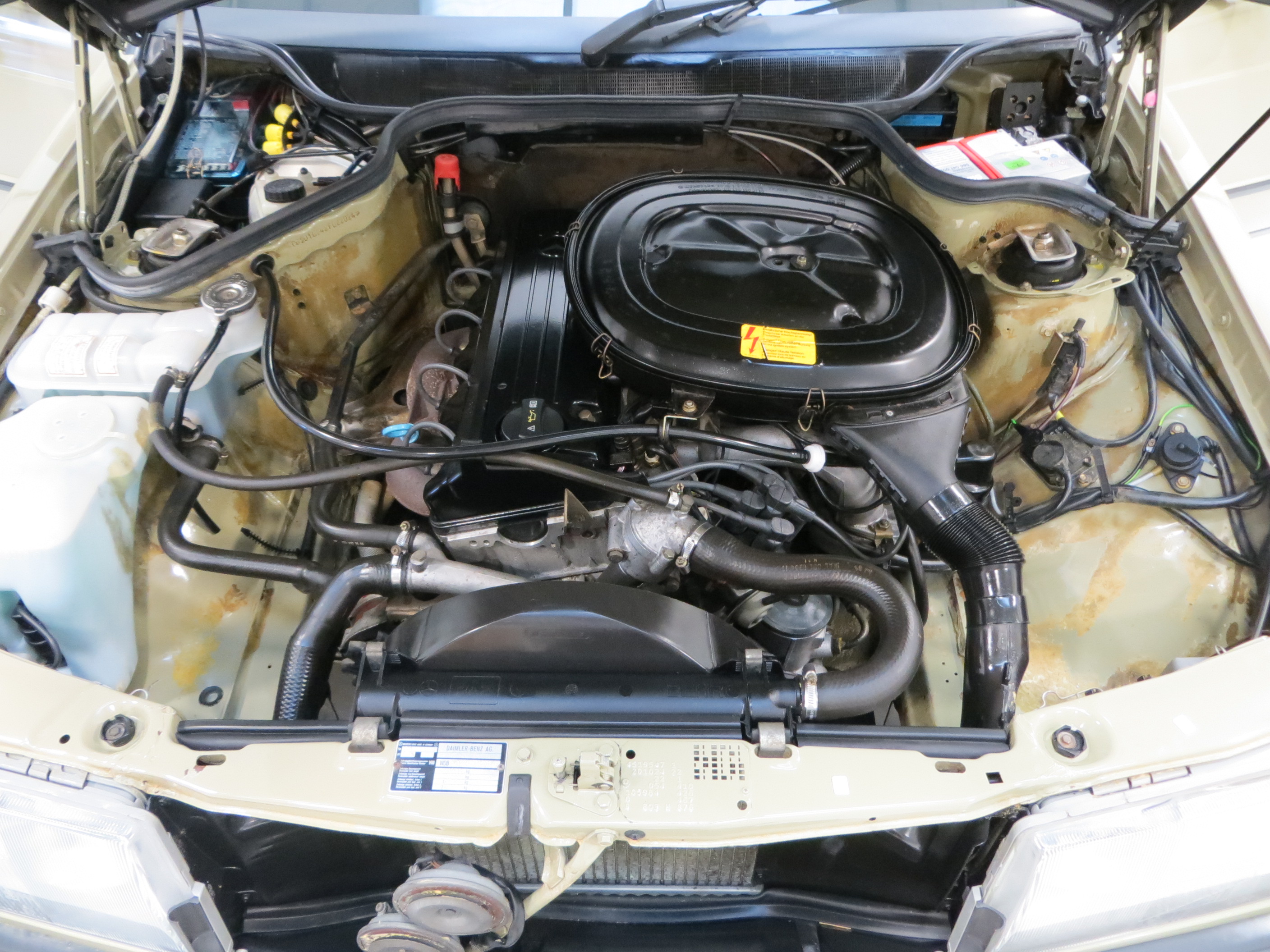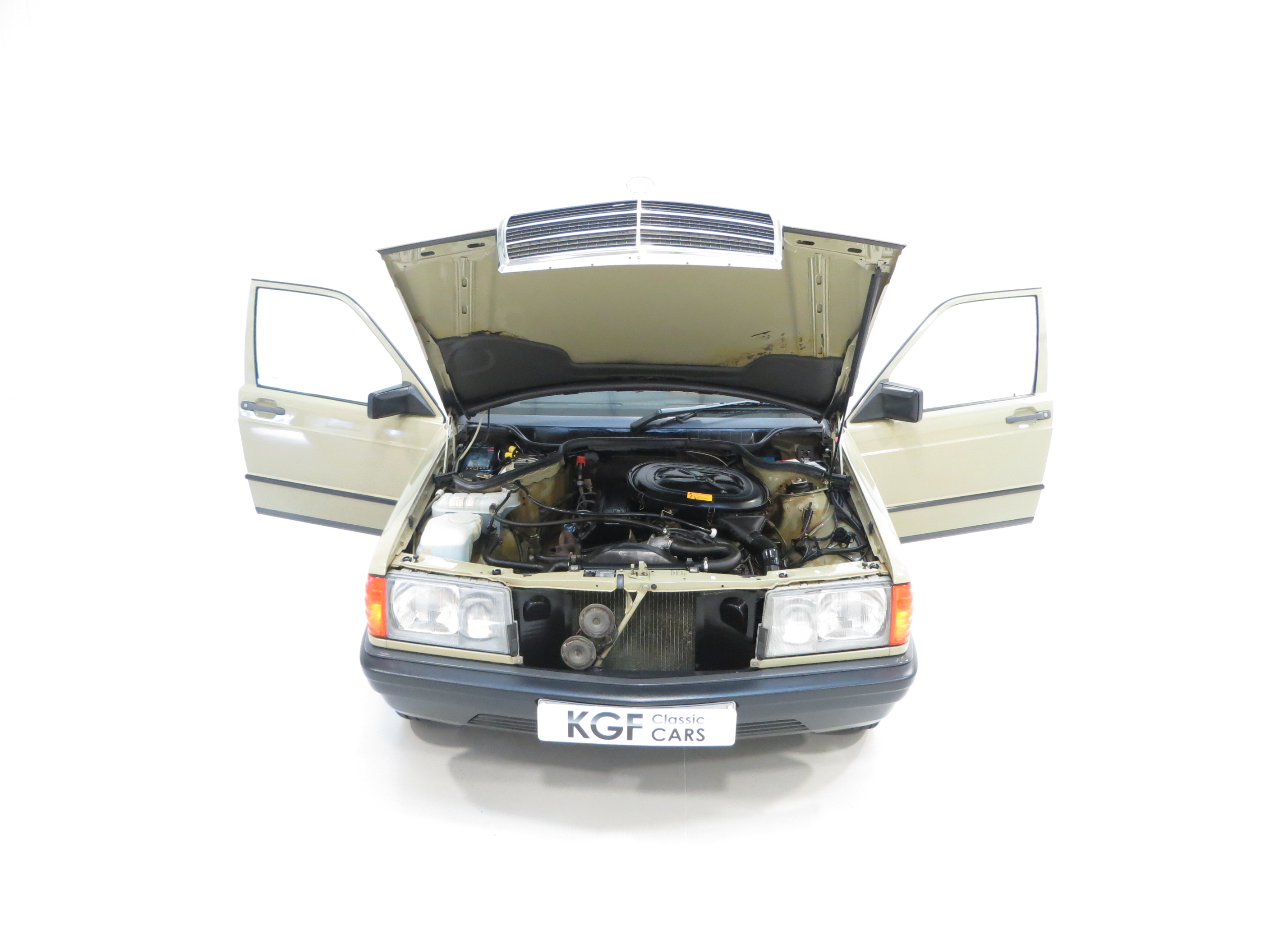 The legendary four cylinder cross-flow Mercedes-Benz engine with electronic/mechanical fuel injection is renowned for uncompromising refinement and reliability. Displacing 1997cc, a top speed of 121mph and 0-60 mph time of 9.8 seconds is quietly and comfortably achieved. The clean engine bay displays factory applied wax as well as all original plates, stickers and chassis stampings, and even the yellow PDI dots on the strut top bolts! The optional four speed automatic transmission is effortless and delivers a beautifully smooth and relaxed driving manner.