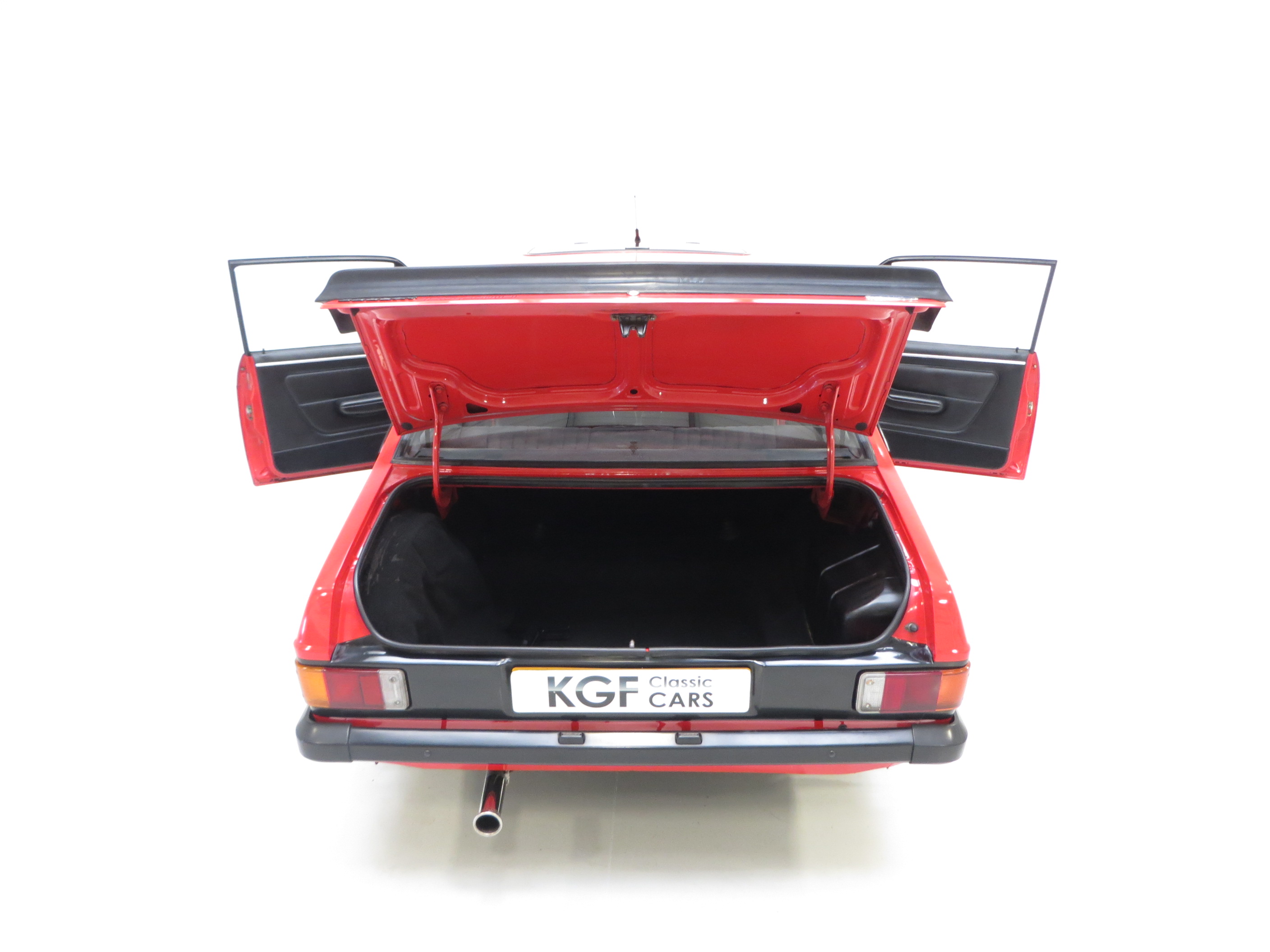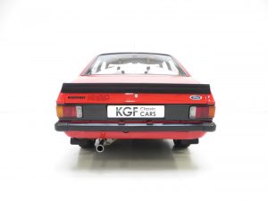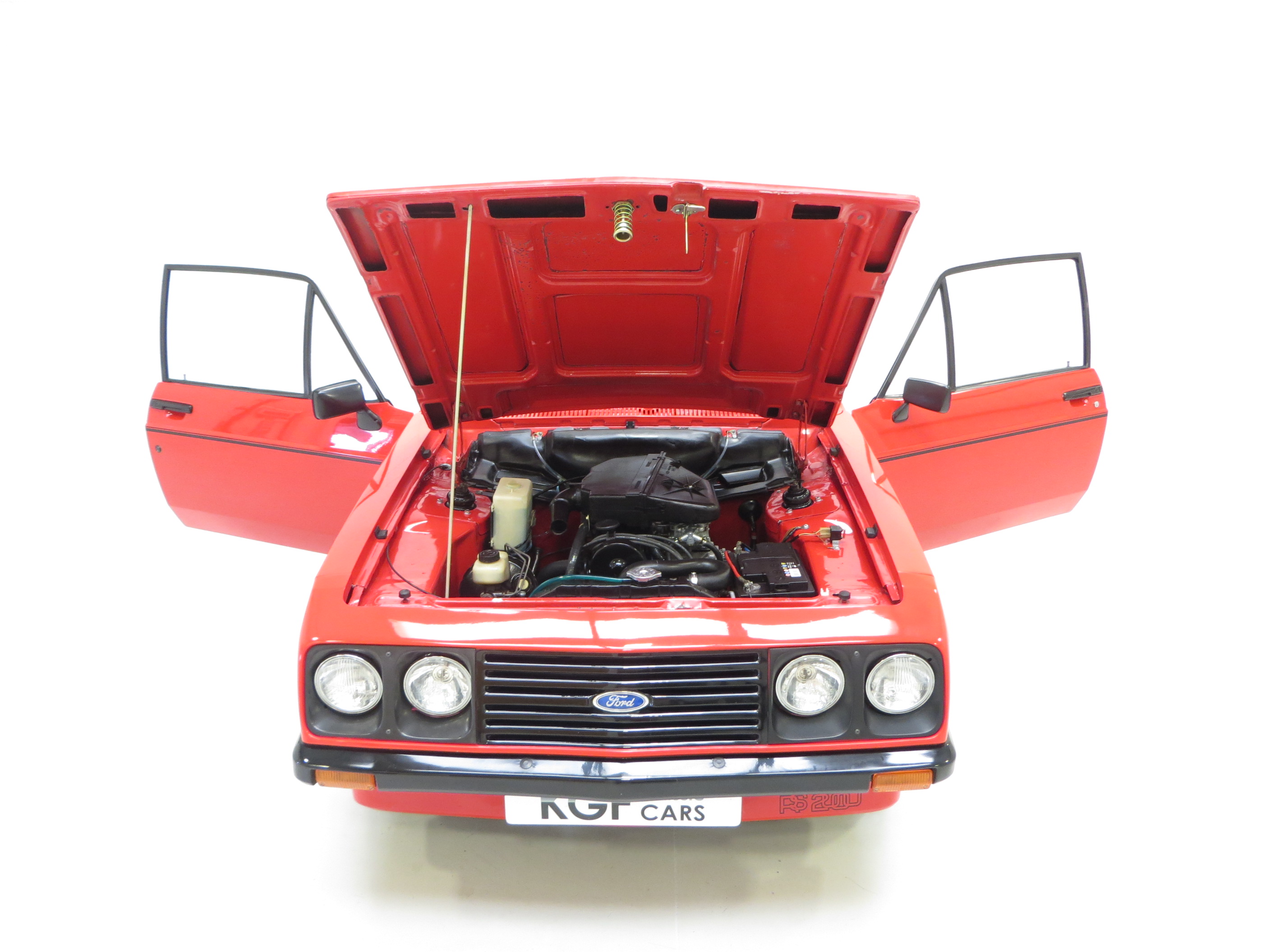 This excellent RS2000 finished in vibrant Venetian Red boasts a marvellous deep shine and uniform finish. This example has avoided the common modification and lowering tendencies and remains exactly as Ford intended. Minor paintwork imperfections are notable under scrutiny but certainly do not spoil the appeal. Worthy of mention are a small amount of paint lift to the lower nearside door which has not penetrated the original door skin. All trim sections, RS decals and badges remain intact and are in good order. Unique Custom features such as the Bronze tinted glass and black back panel remain. A sunroof has been neatly installed from new and security deadlocks to the doors. The boot floor is very clean with factory markings visible, and the underside is free from excess application of underseal to allow an honest inspection. A very usable and attractive RS2000, one for the avid blue oval enthusiast wanting to exploit maximum enjoyment from classic Ford ownership.